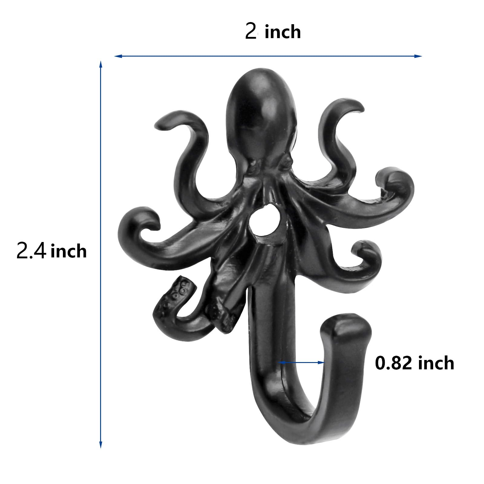 FANYUN 5 Pack Kleiderhaken Wandhaken, Octopus Dekorative Wandhaken Rustikaler Metallbügel für Handtuch, Schlüsselhalter, Hängende Mäntel, Schals, Taschen, Geldbörsen, Rucksäcke Wohnkultur (Octopus)