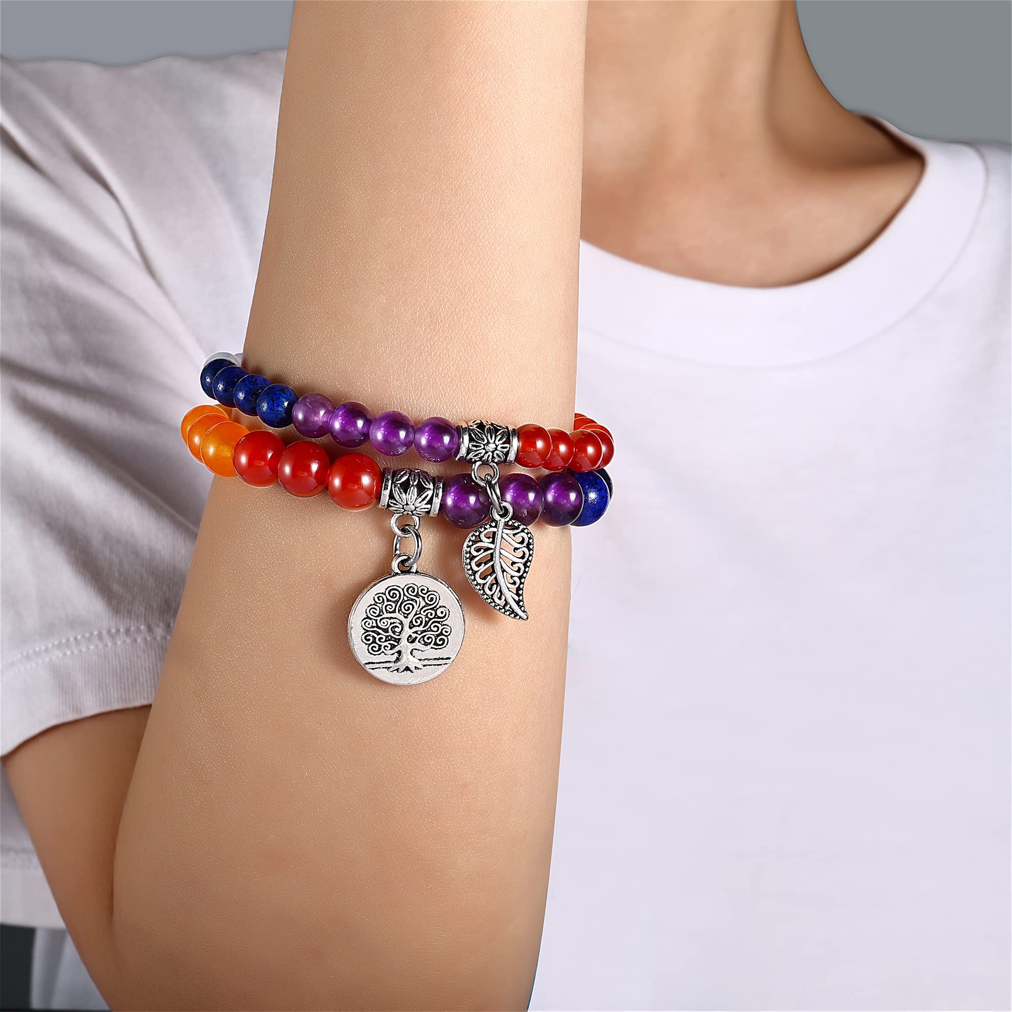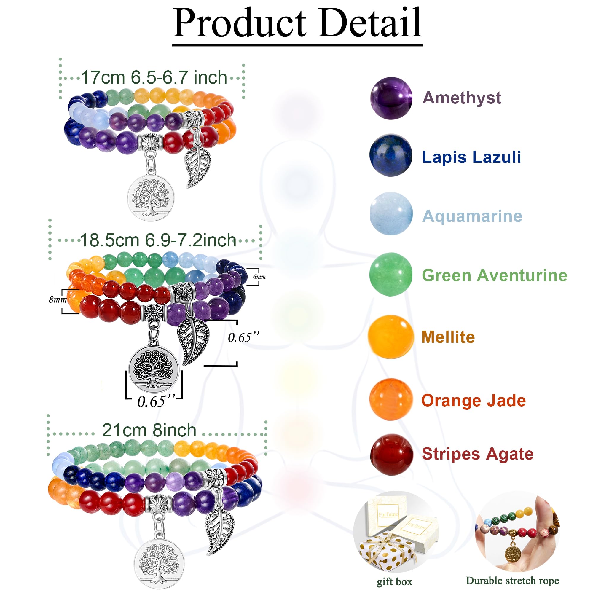 (3) 7 Chakra-Perlen: Jedes der 7 Chakren hat eine Schwingungsfrequenz, die einer anderen Farbe zugeordnet ist. Wenn Sie bestimmte Kristalle mit den Chakren des Körpers verbinden, verstärkt die Kristallstruktur der Edelsteine Ihre Heilungsabsichten und stellt den Energiekörper wieder her und gleicht ihn aus, indem Blockaden gelöst werden.