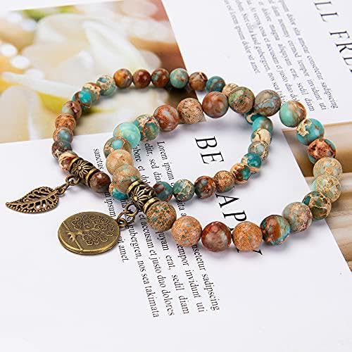 Farfume Chakra-Armbänder für Damen, Kristall-Armband, natürliche Edelsteine, Yoga, Reiki-Armreif, ein Set von doppelten Armbändern