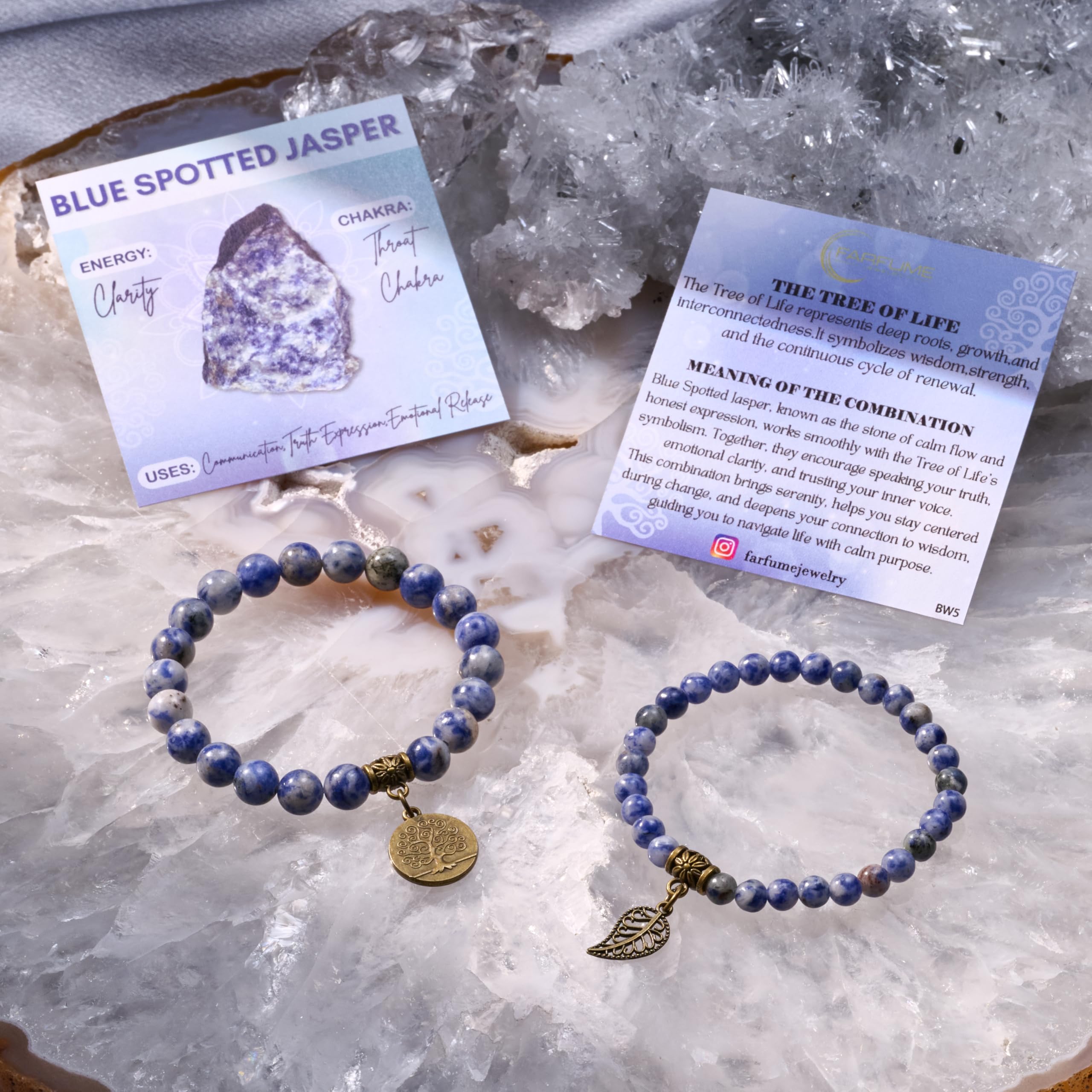 - Ruhige Gewässer der Wahrheit: Blaufleckjaspis erschafft eine Strömung authentischen Ausdrucks. Er offenbart Ihre tiefsten Wahrheiten mit kristallener Klarheit. Durch die Verschmelzung mit der Energie des Lebensbaums fördert er besonnene Kommunikation und ermutigt Sie, Ihrer inneren Stimme zu vertrauen