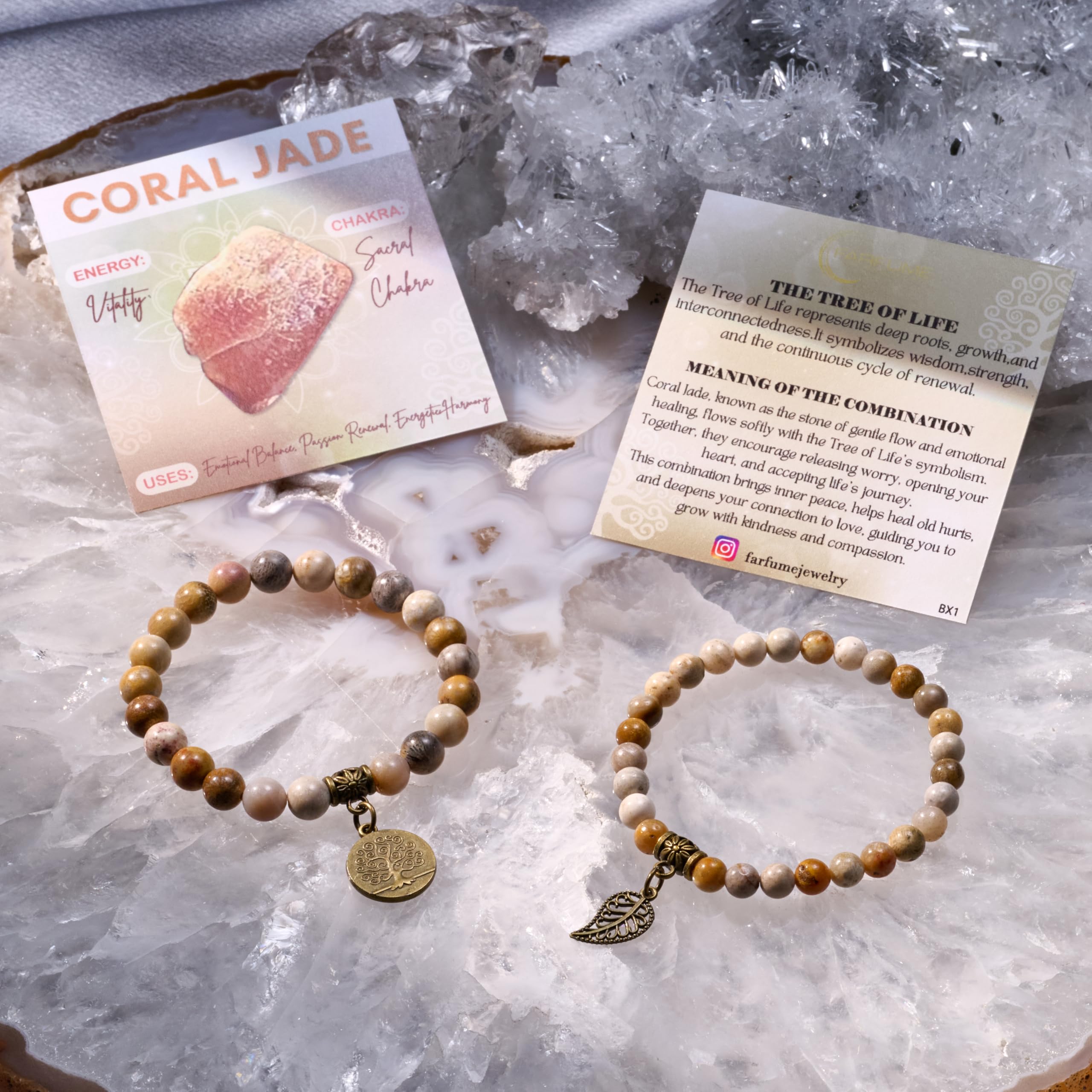 - Sanfter Rhythmus des Ozeans: Korallenjade bewegt sich mit der Lebenskraft des Lebensbaums und erschafft eine Welle emotionaler Erneuerung. Sie hilft, Ballast abzuwerfen – wie Wellen, die raue Steine glätten. Sie ermutigt, mit der Weisheit des Ozeans durchs Leben zu fliessen: mal kraftvoll, mal sanft, doch stets vorwärts strebend
