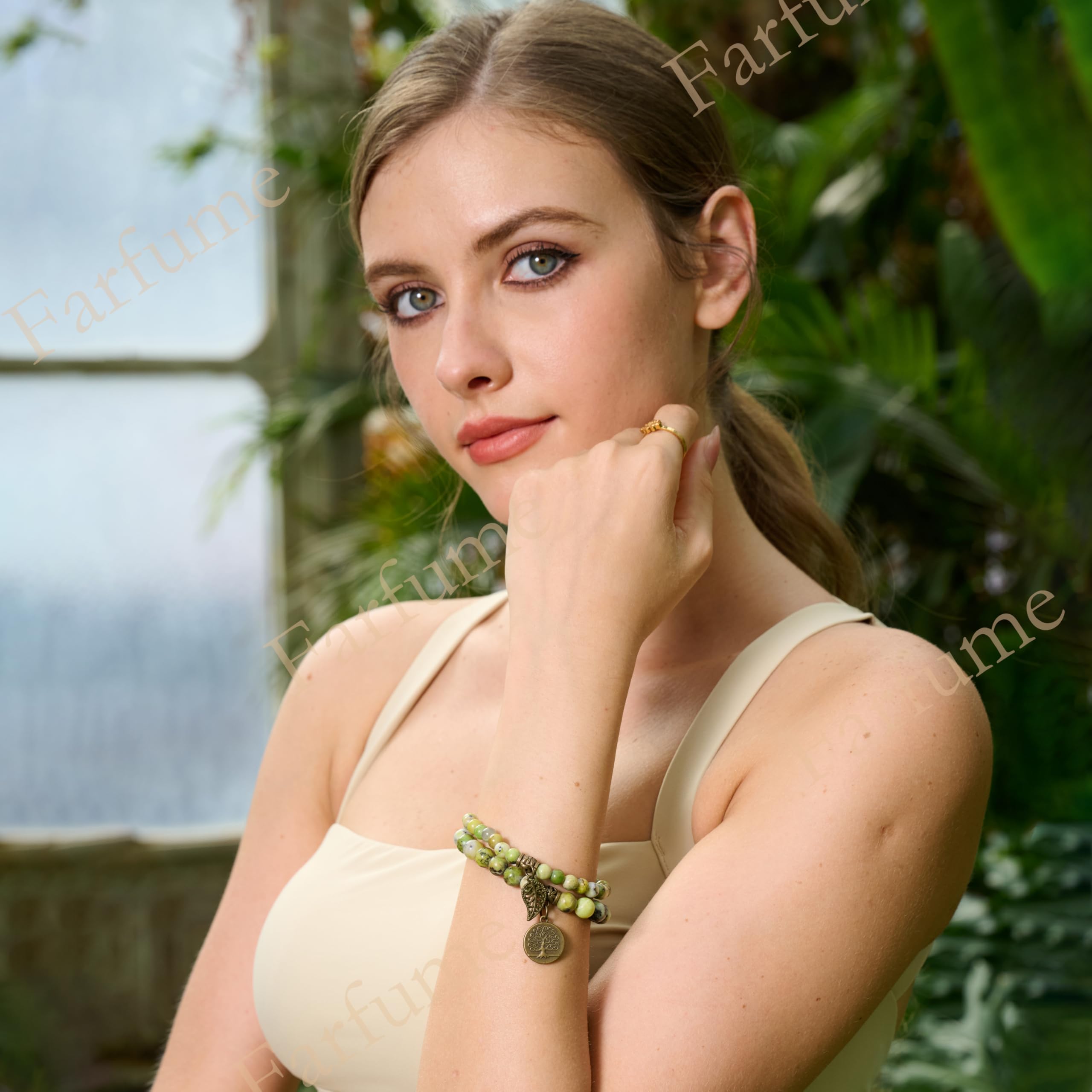 Farfume Chakra-Armbänder für Damen, Kristall-Armband, natürliche Edelsteine, Yoga, Reiki-Armreif, ein Set von doppelten Armbändern