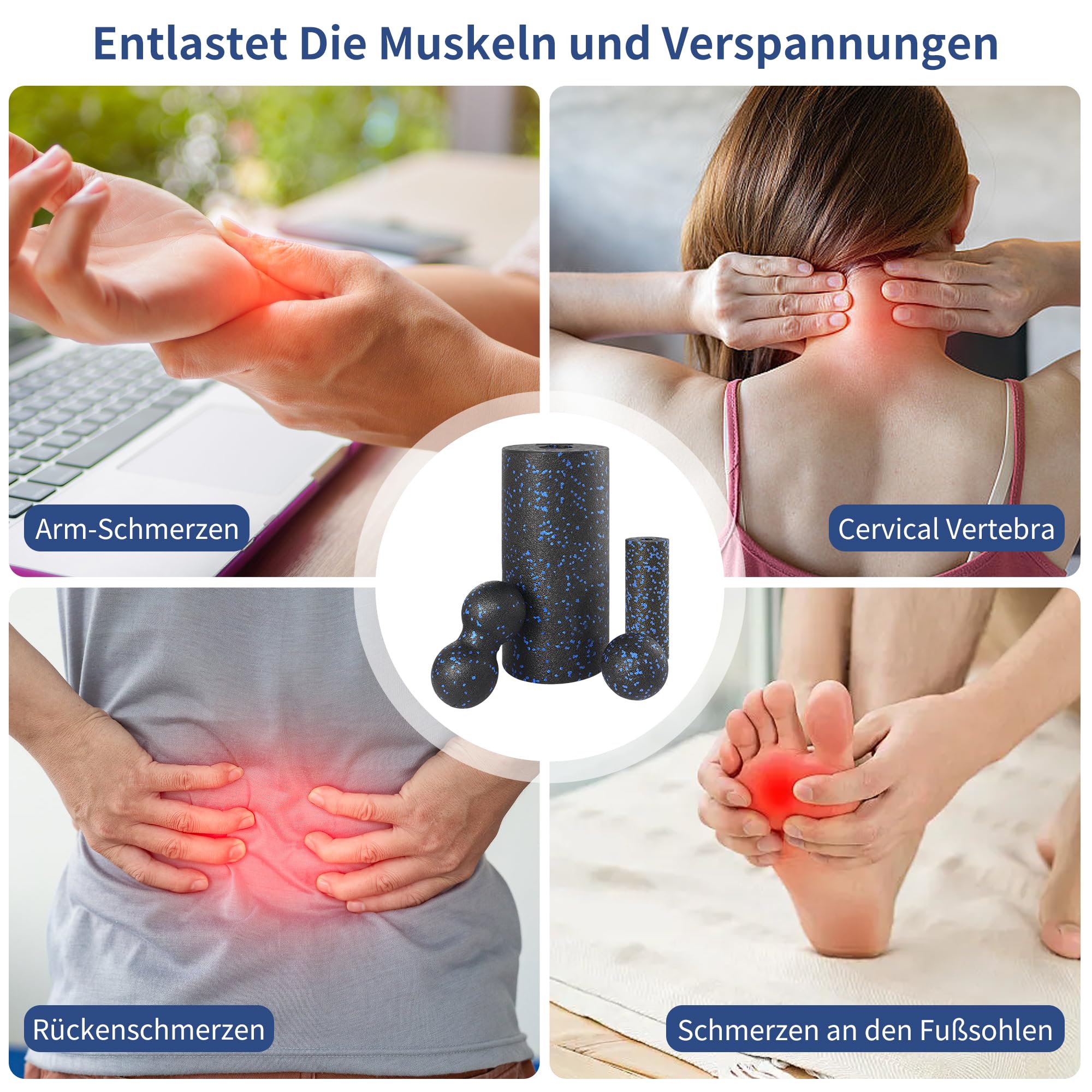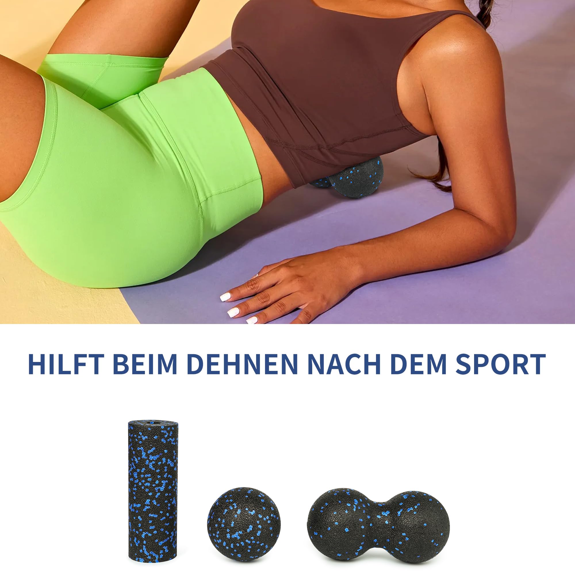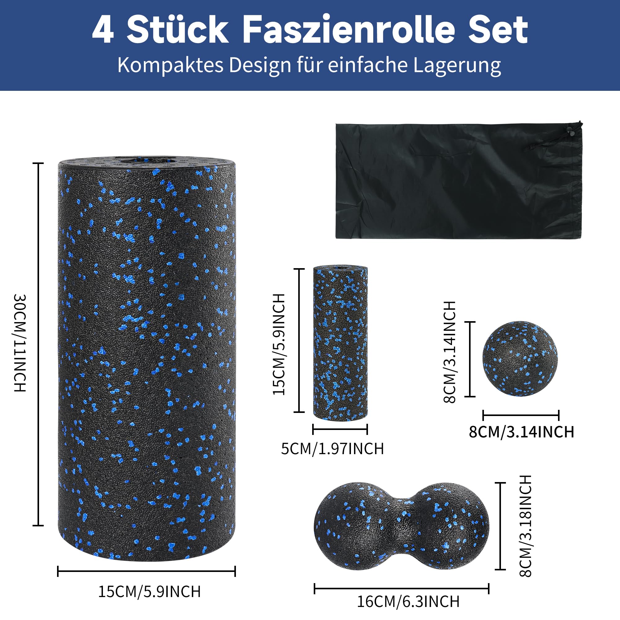 Faszienrolle 4er-Set mit grosser und kleiner Rolle, Erdnussball und Einzelball für Intensive Massage und Muskelentspannung (inkl. Aufbewahrungstasche)