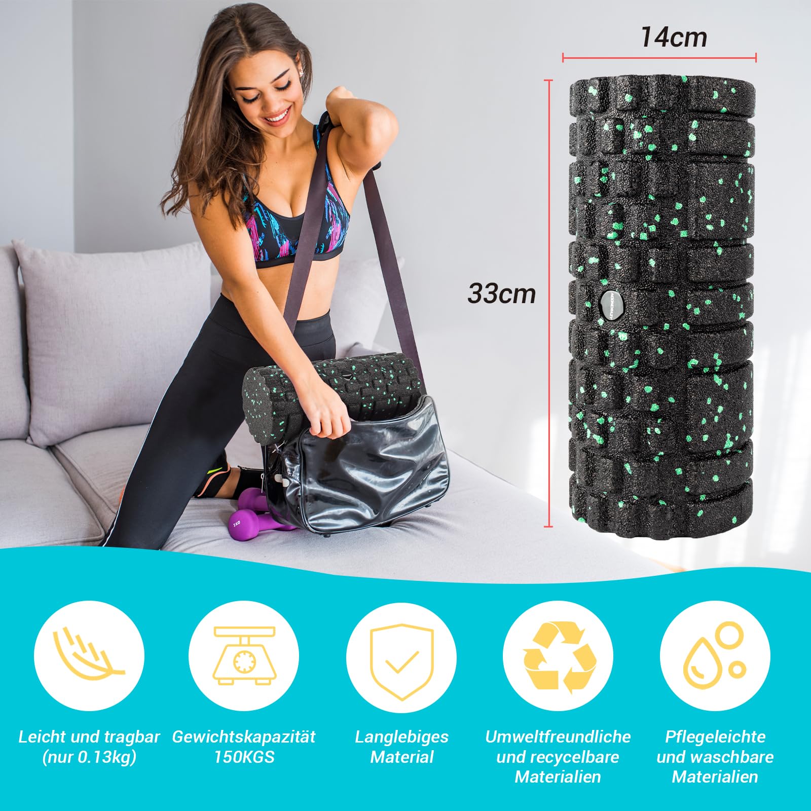 Faszienrolle 33 x 14 cm 3D-Textur – Foam Roller mittlere Haerte fuer Ruecken, Wirbelsaeule, Beine, bis 150 kg
