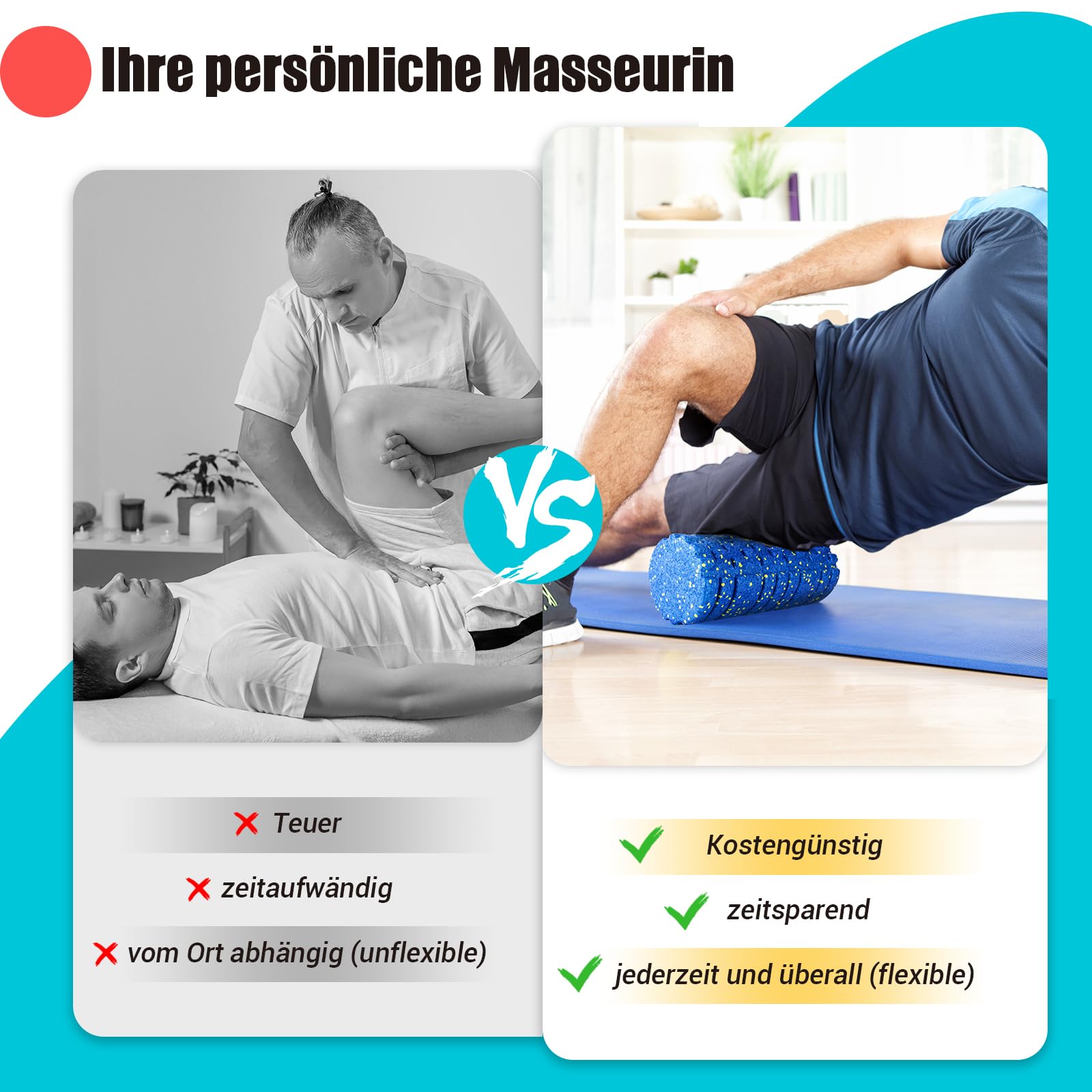Lieferumfang: 1 Faszienrolle plus Handbuch mit 9 Massageuebungen