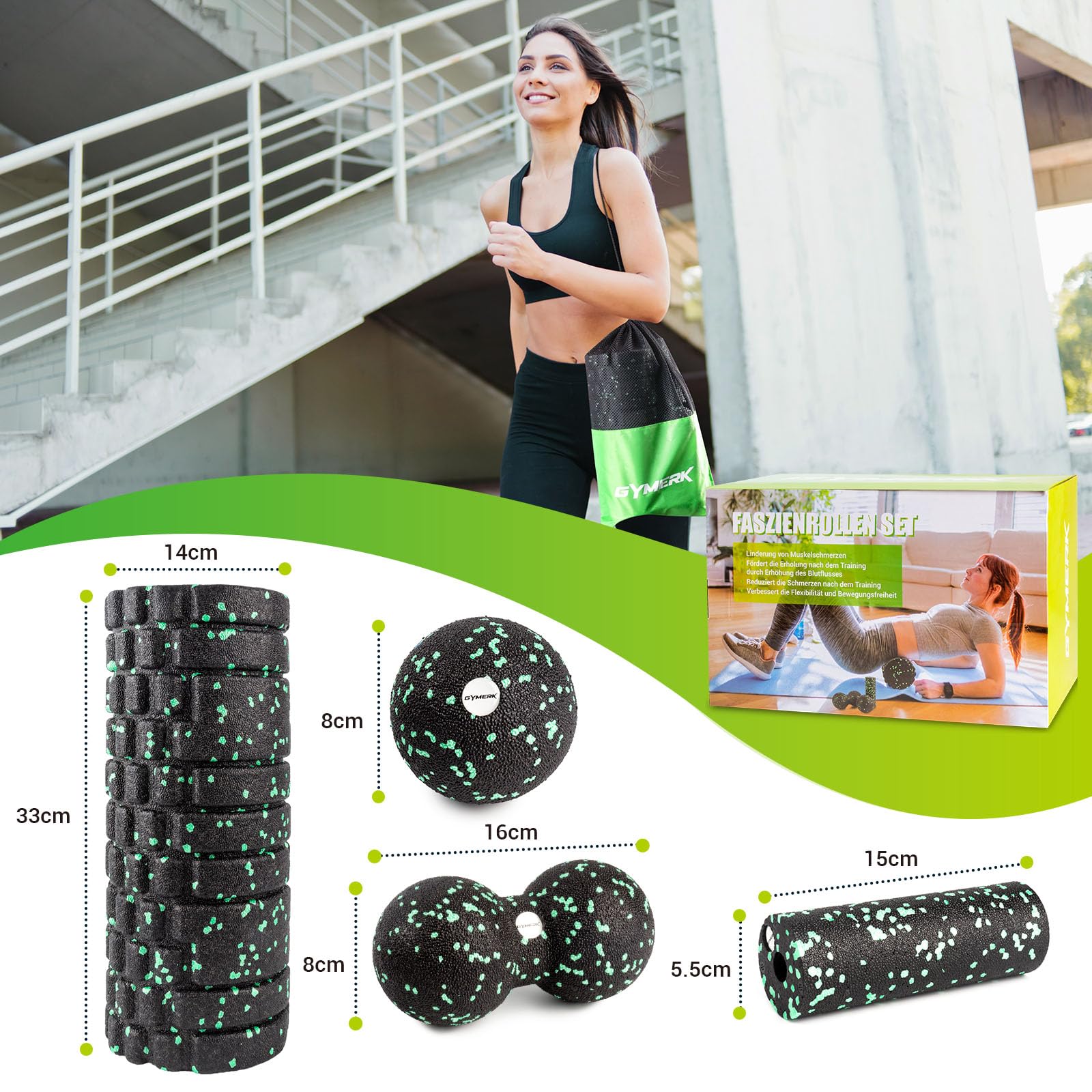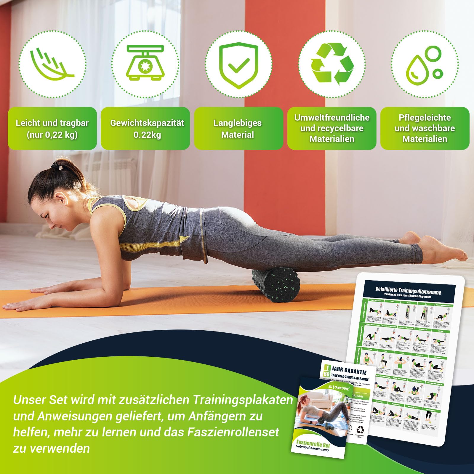 Faszienrolle Set mit 3D-Texturmassage, Enthält Anweisungen und Poster in Deutscher Sprache Tragetasche, Yoga Faszien Set mit Faszienball Faszienrolle Klein Duoball