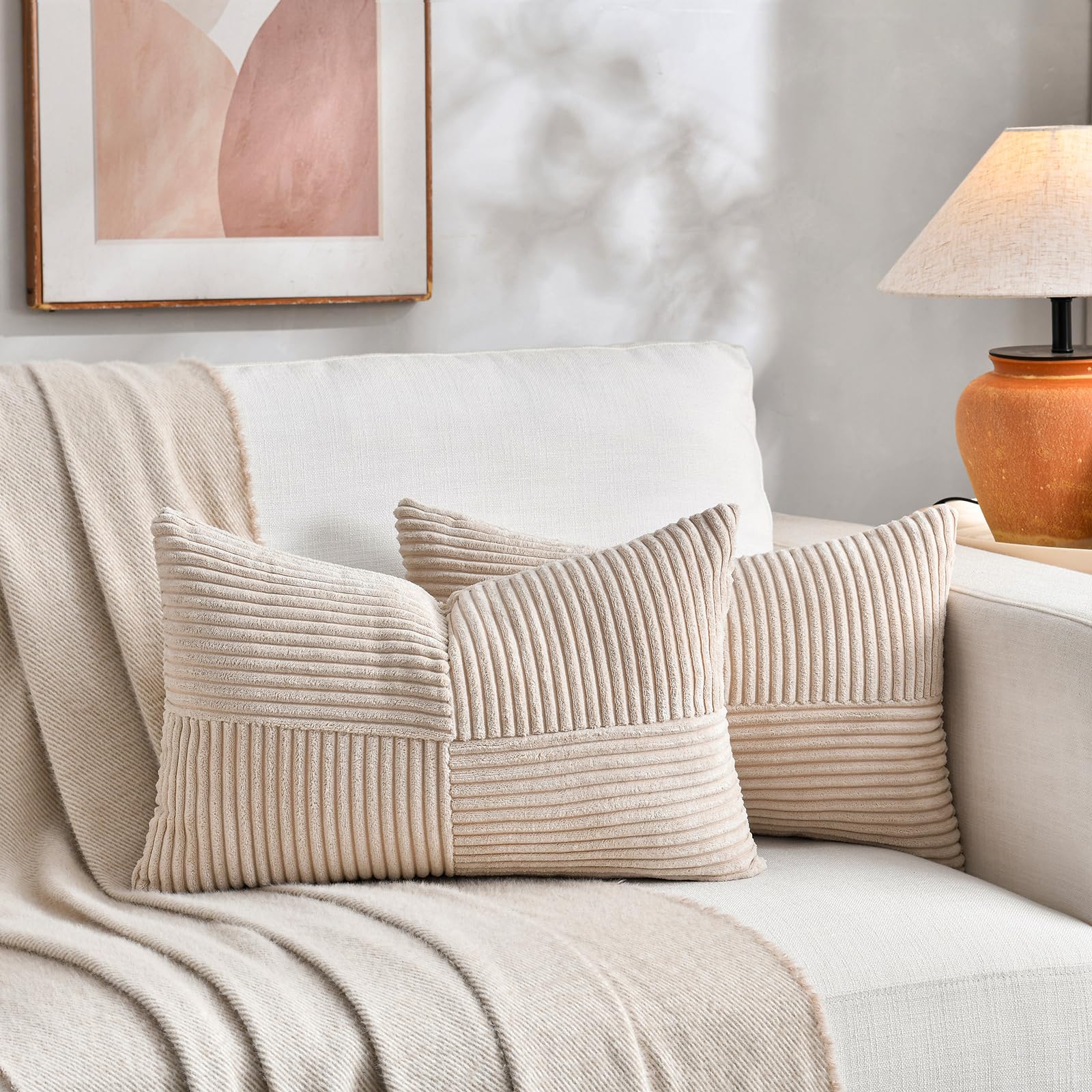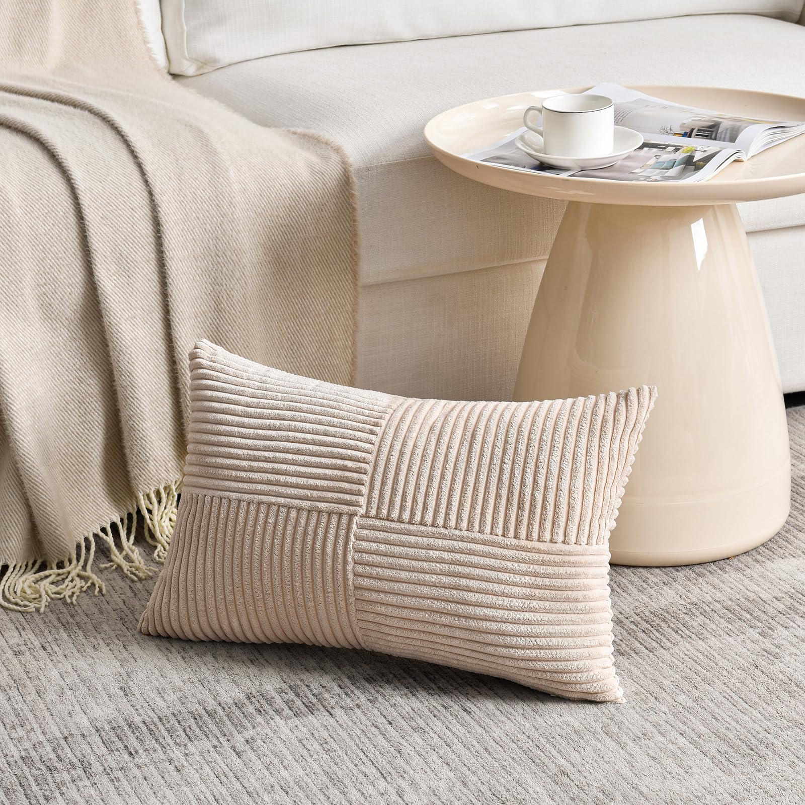 FDTERN 2er Set Khaki Beige Kordsamt Kissenbezug 30x50CM Weich Moderne Dekorative Kissenbezüge Kissenhülle Dekokissenbezug Sofakissen Dekokissen Boho Deko für Sofa Schlafzimmer Wohnzimmer Balkon
