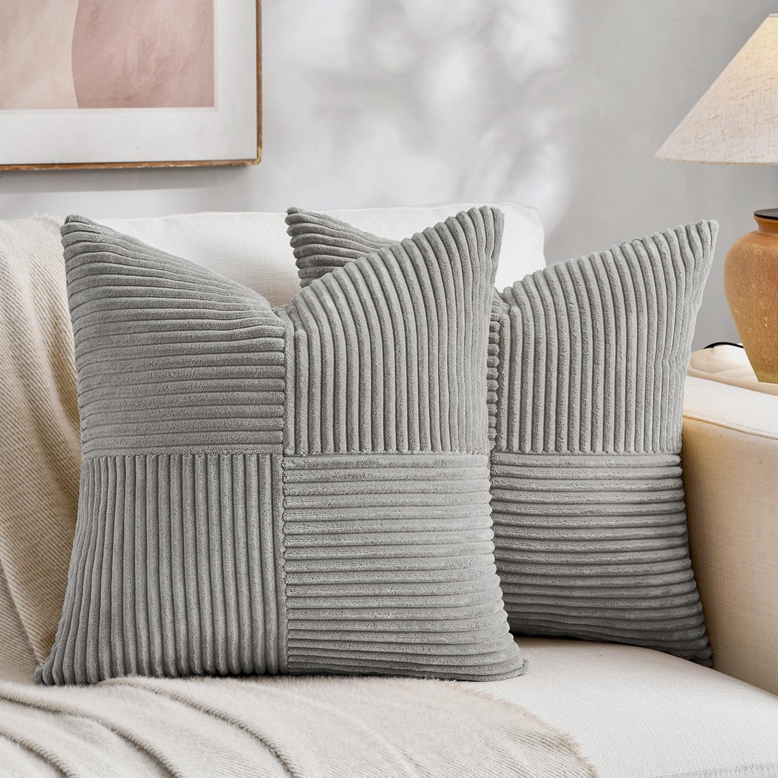 FDTERN 2er Set Hellgrau Kordsamt Kissenbezug 50x50CM Weich Moderne Dekorative Kissenbezüge Kissenhülle Dekokissenbezug Sofakissen Dekokissen Boho Deko für Sofa Schlafzimmer Wohnzimmer Balkon
