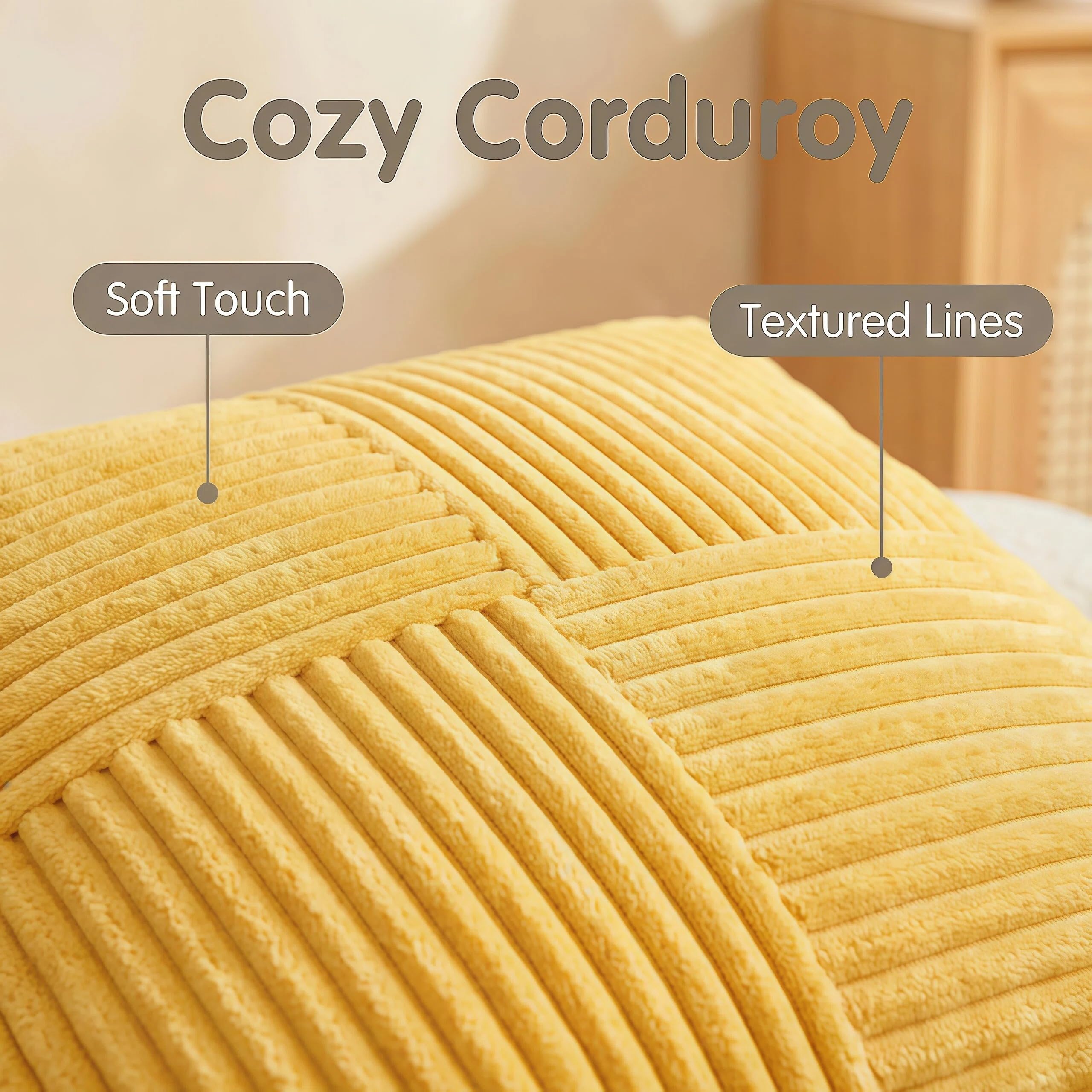 FDTERN 2er Set Hellgelb Kordsamt Kissenbezug 50x50CM Weich Moderne Dekorative Kissenbezüge Kissenhülle Dekokissenbezug Sofakissen Dekokissen Boho Herbst Deko für Sofa Schlafzimmer Wohnzimmer Balkon