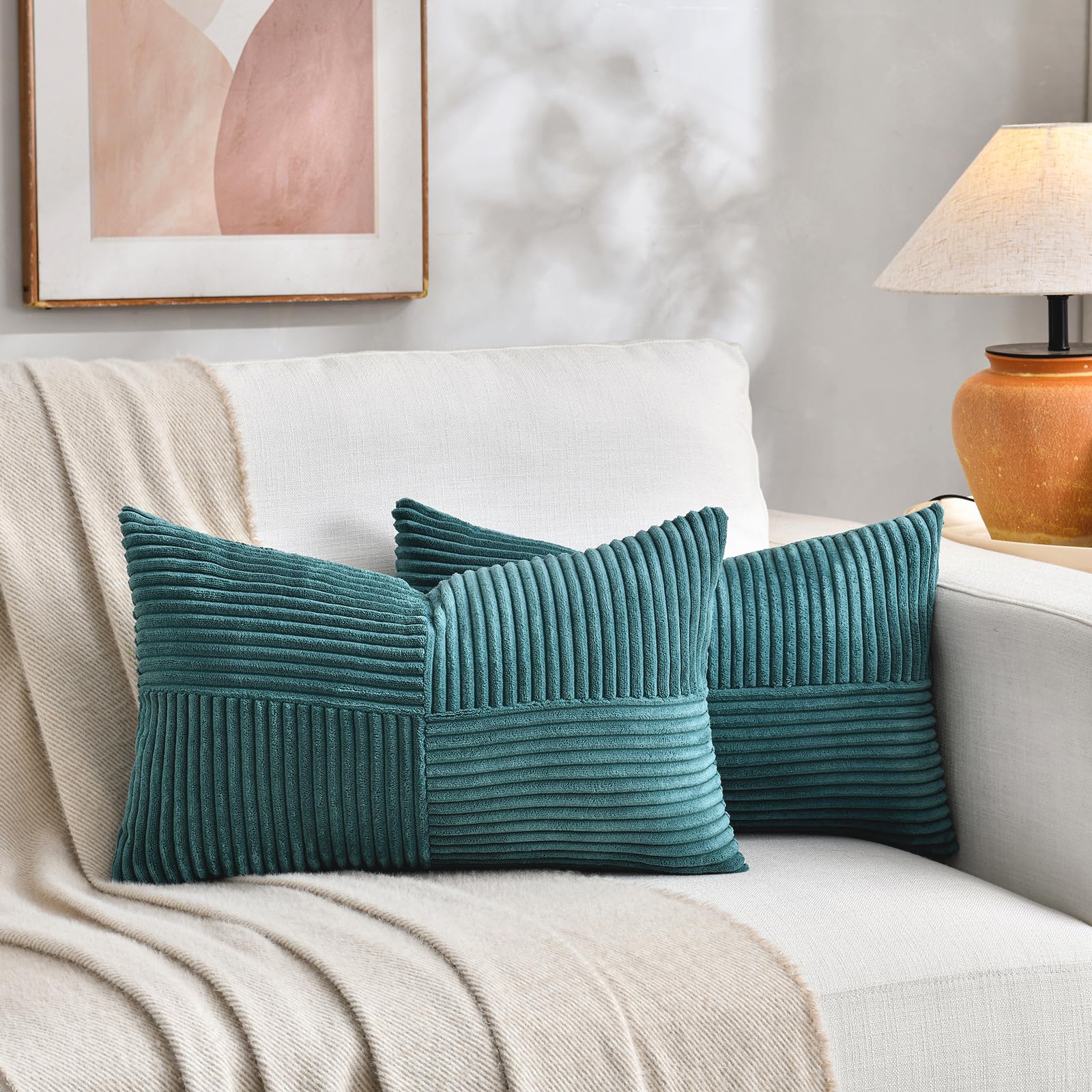 FDTERN 2er Set Blaugrün Kordsamt Kissenbezug 50x60 Weich Moderne Dekorative Kissenbezüge Kissenhülle Dekokissenbezug Sofakissen Dekokissen Boho Deko für Sofa Schlafzimmer Wohnzimmer Bett