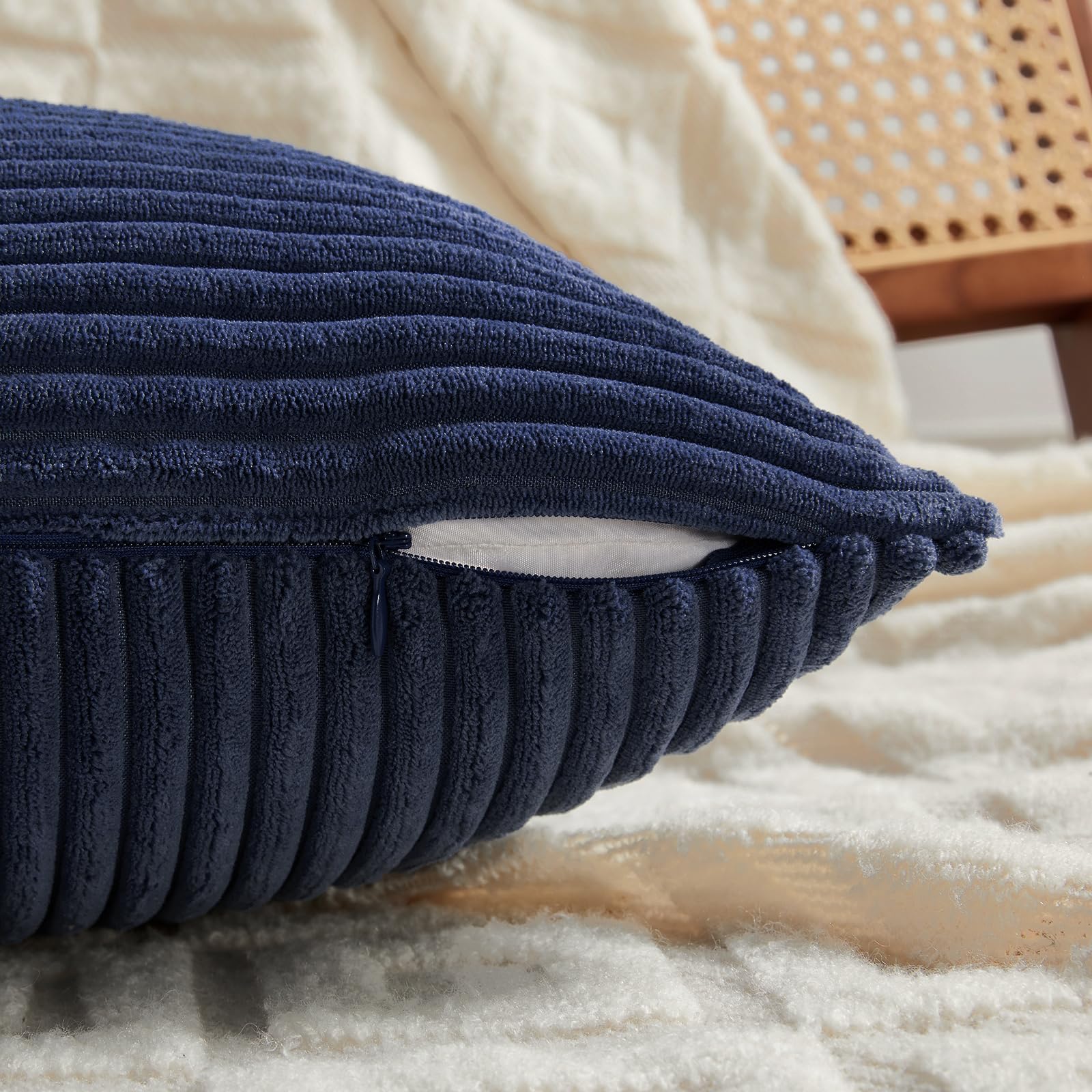 FDTERN 2er Set Navy Blau Kordsamt Kissenbezug 60x60CM Weich Moderne Dekorative Kissenbezüge Kissenhülle Dekokissenbezug Sofakissen Dekokissen Boho Deko für Sofa Schlafzimmer Wohnzimmer Bett