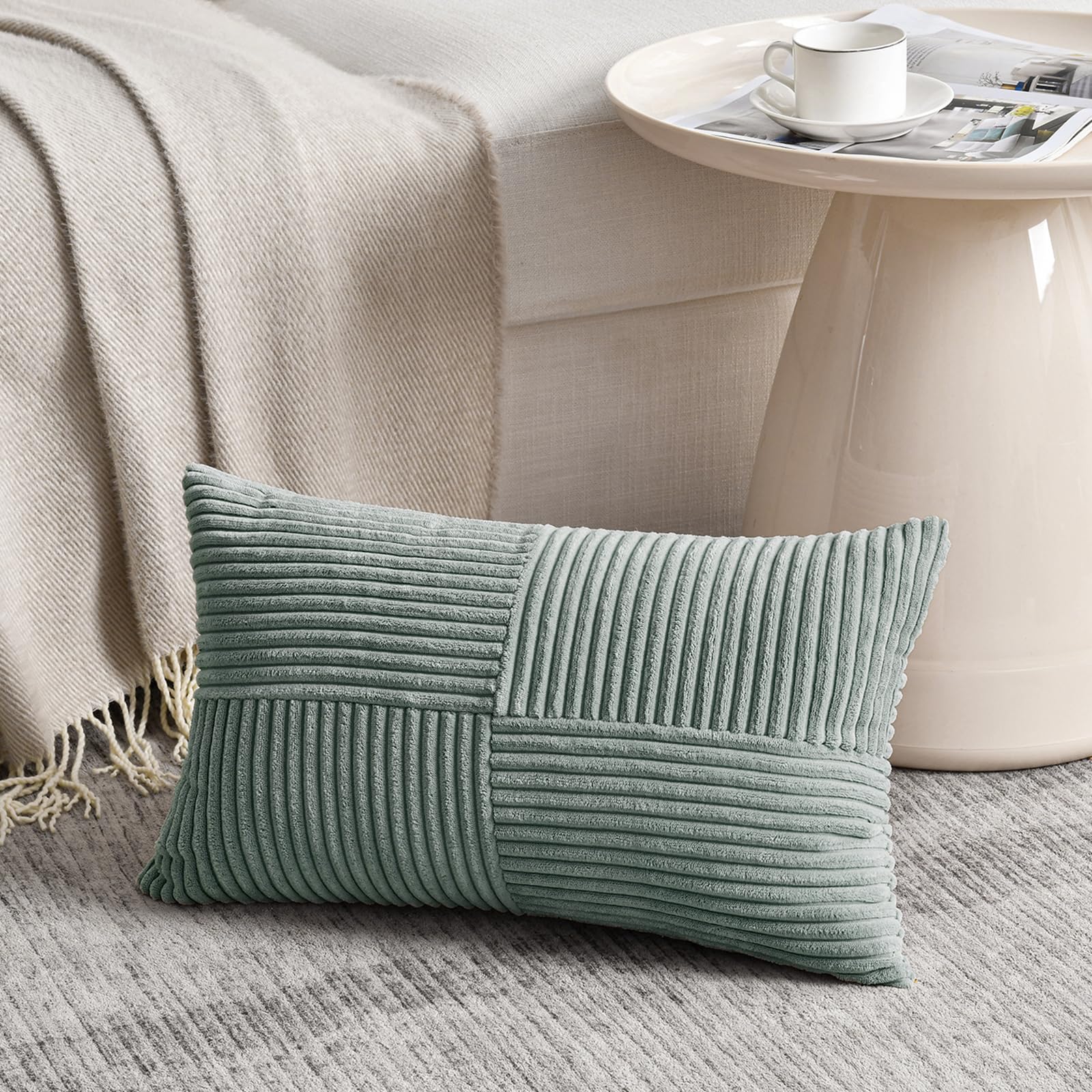 FDTERN 2er Set Graublau Kordsamt Kissenbezug 40x70 Weich Moderne Dekorative Kissenbezüge Kissenhülle Dekokissenbezug Sofakissen Dekokissen Boho Deko für Sofa Schlafzimmer Wohnzimmer Bett