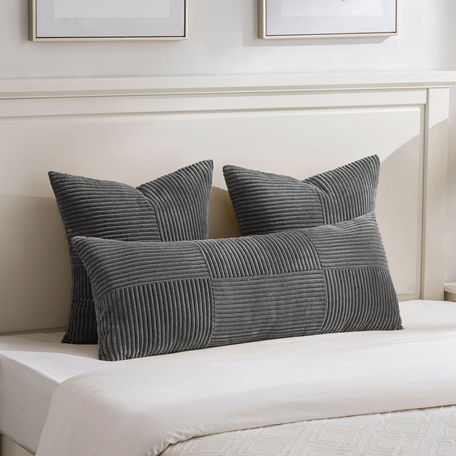FDTERN 2er Set Dunkelgrau Kordsamt Kissenbezug 65x65CM Weich Moderne Dekorative Kissenbezüge Kissenhülle Dekokissenbezug Sofakissen Dekokissen Boho Deko für Sofa Schlafzimmer Wohnzimmer Bett