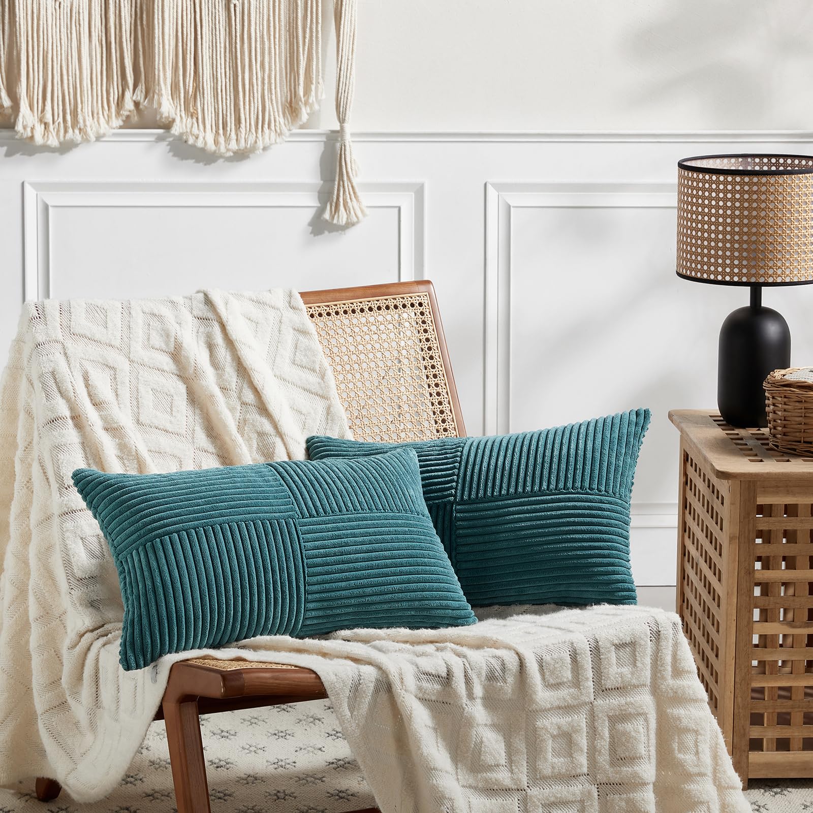 FDTERN 2er Set Blaugrün Kordsamt Kissenbezug 50x70CM Weich Moderne Dekorative Kissenbezüge Kissenhülle Dekokissenbezug Sofakissen Dekokissen Boho Deko für Sofa Schlafzimmer Wohnzimmer Bett