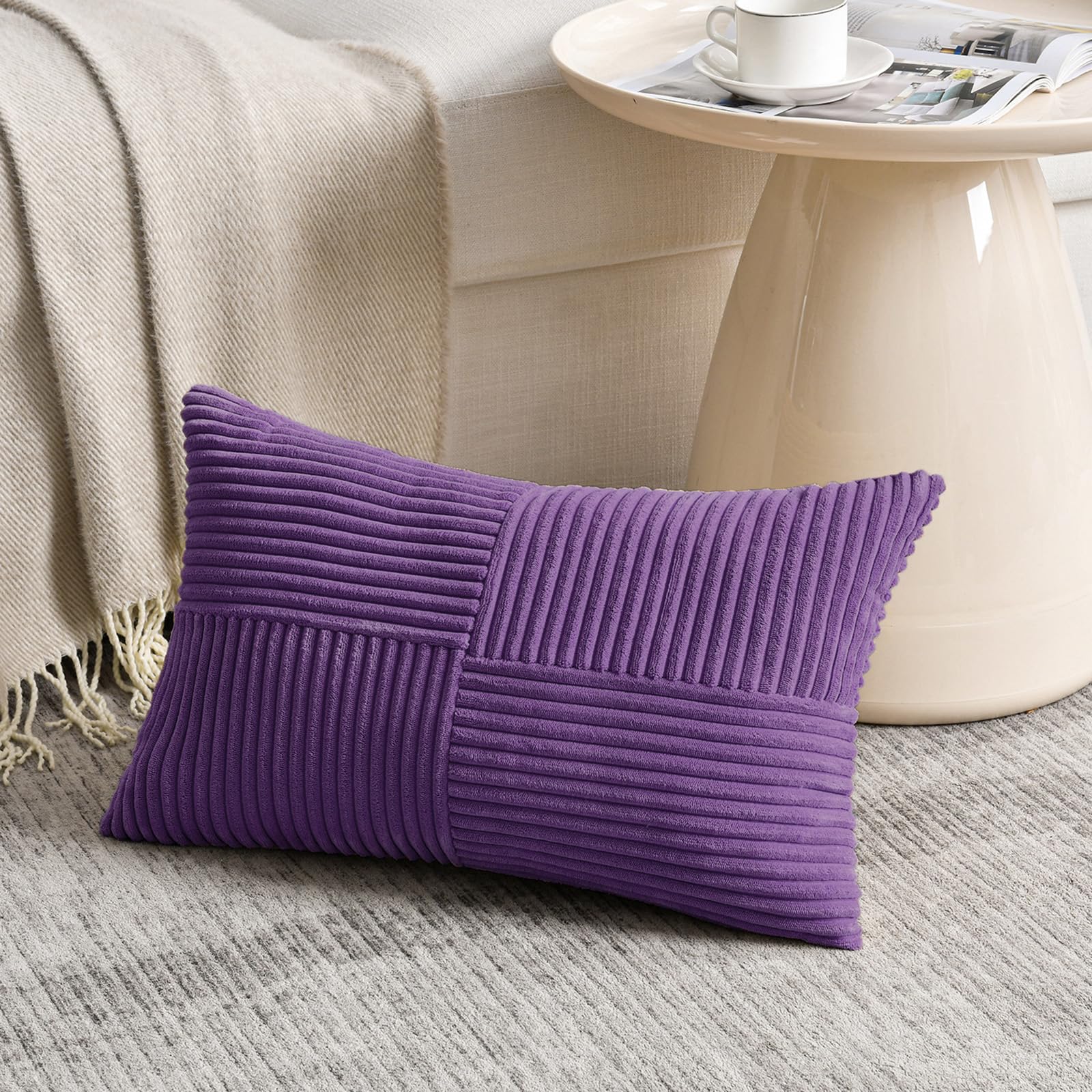 FDTERN 2er Set Violett Kordsamt Kissenbezug 40x80 Weich Moderne Dekorative Kissenbezüge Kissenhülle Dekokissenbezug Sofakissen Dekokissen Boho Deko für Sofa Schlafzimmer Wohnzimmer Bett