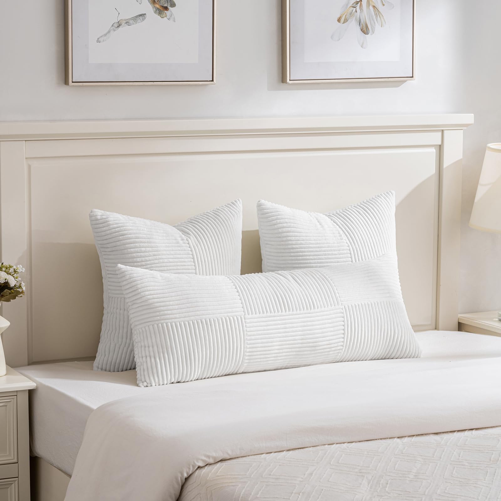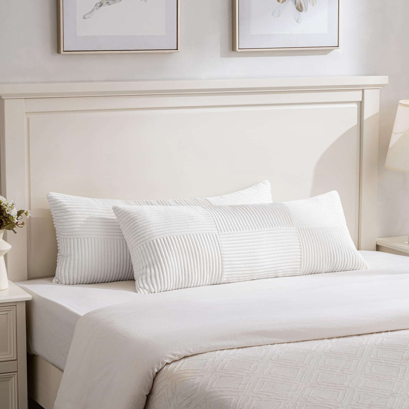 FDTERN 2er Set Reines Weiss Kissenbezug 40x145 cm Weich Moderne Dekorative Kissenbezüge Kissenhülle Dekokissenbezug Sofakissen Dekokissen Boho Deko für Sofa Schlafzimmer Wohnzimmer Bett