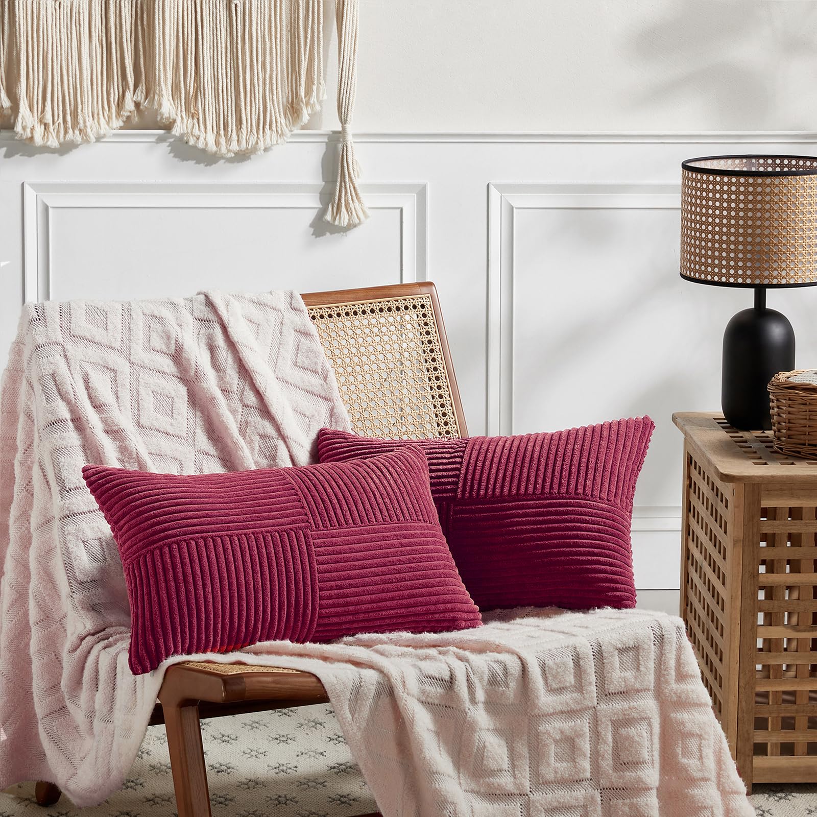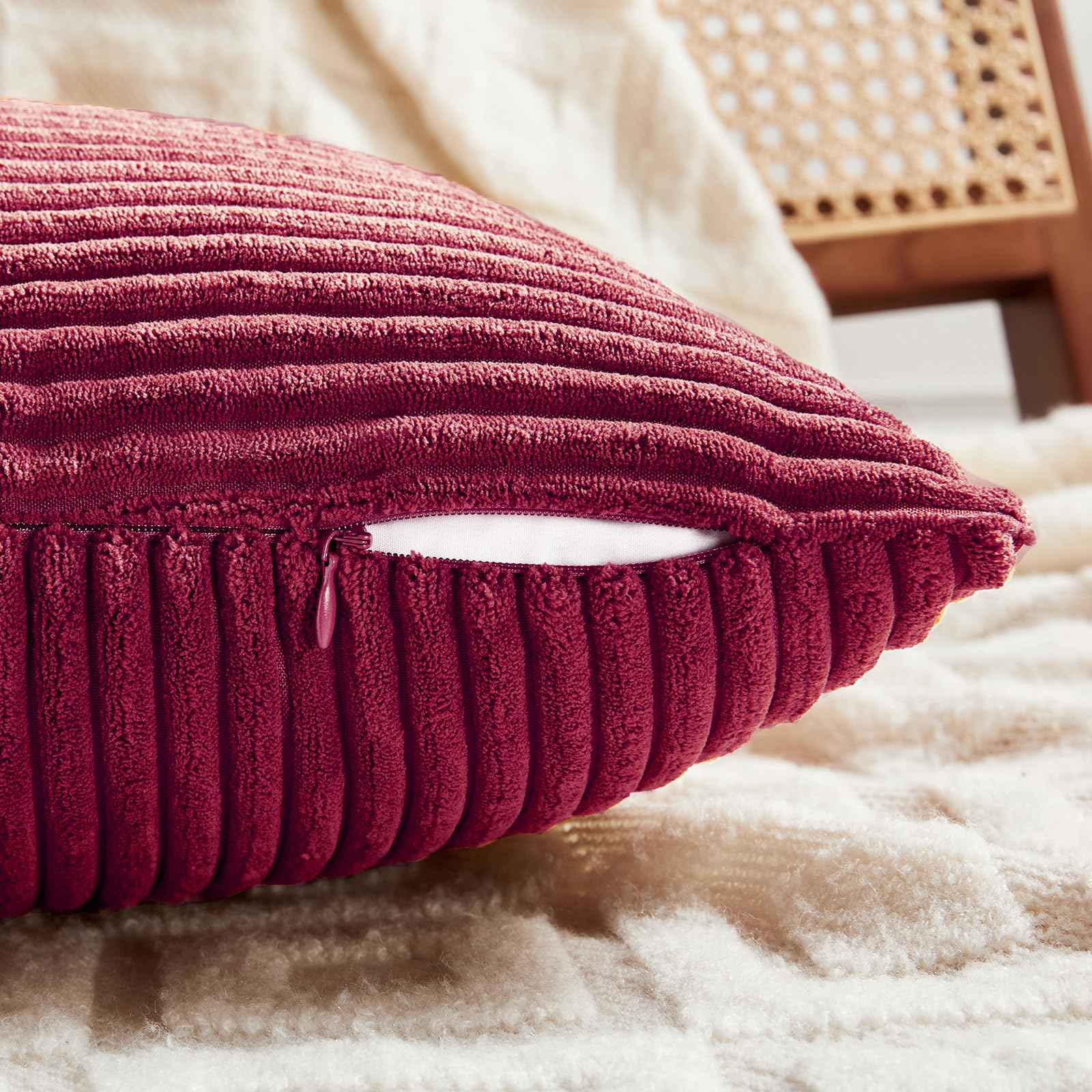 FDTERN 2er Set Weinrot Kordsamt Kissenbezug 40x80CM Weich Moderne Dekorative Kissenbezüge Kissenhülle Dekokissenbezug Sofakissen Dekokissen Boho Deko für Sofa Schlafzimmer Wohnzimmer Bett