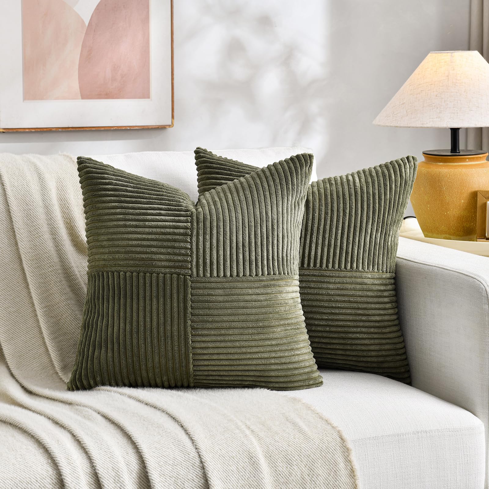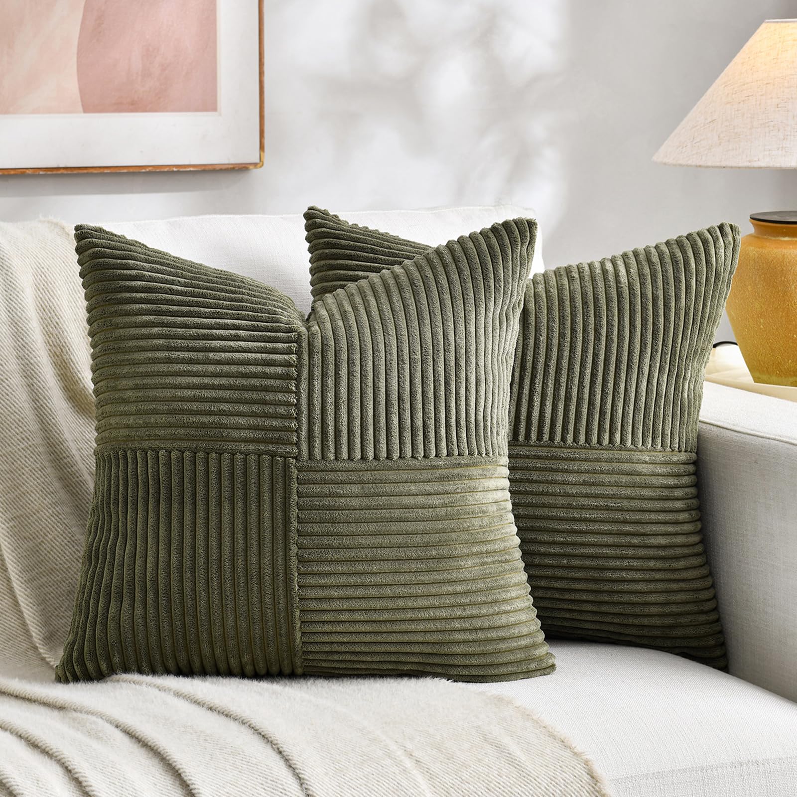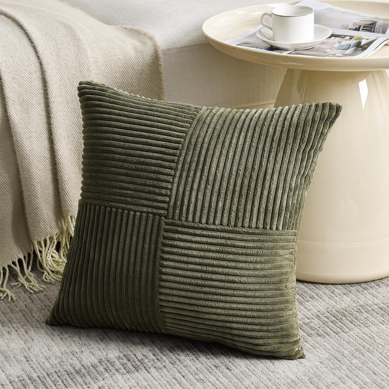 FDTERN 2er Set Olivgrün Kissenbezug 80x80 cm Weich Moderne Dekorative Kissenbezüge Kissenhülle Dekokissenbezug Sofakissen Dekokissen Boho Deko für Sofa Schlafzimmer Wohnzimmer Bett