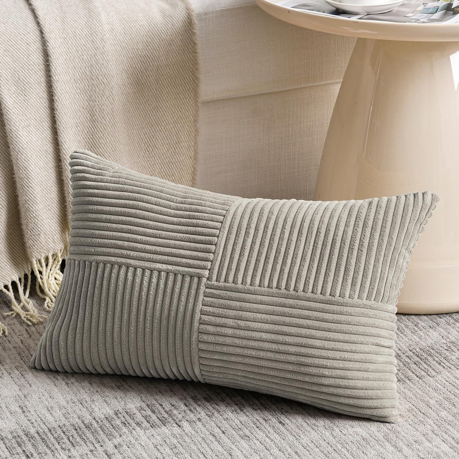 FDTERN 2er Set Neutral Grau Kordsamt Kissenbezug 30x40 Weich Moderne Dekorative Kissenbezüge Kissenhülle Dekokissenbezug Sofakissen Dekokissen Boho Deko für Sofa Schlafzimmer Wohnzimmer Bett