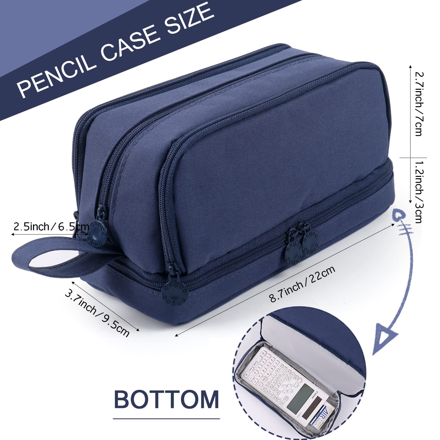 • Grosses Fassungsvermögen Stiftemäppchen: Verbesserte Grösse 22cm*9.5cm*10cm(L*B*H) mit grosser Kapazität Lagerung, Es kann bis zu 100+ farbige Stifte oder Bleistifte speichern. Toll für Studenten, die eine Vielzahl von stationären Zubehör wie Stifte, Bleistiftspitzer, Taschenrechner, Gummi, Aufkleber, Lineal, etc. tragen müssen.