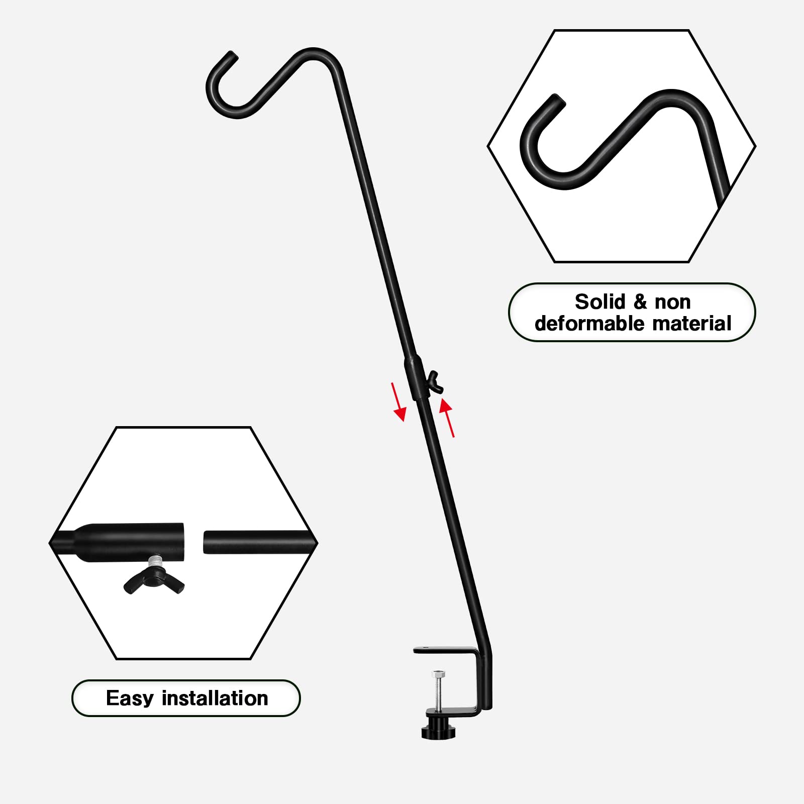 FEED GARDEN, verstellbarer Deckhaken, 73,9 cm, solide Stahl-Deckhänger für Vogelfutterspender, Laternen, Blumenkörbe, Drahtkörbe für Suet-Futter, mit Klemme, Schwarz, 2 Stück