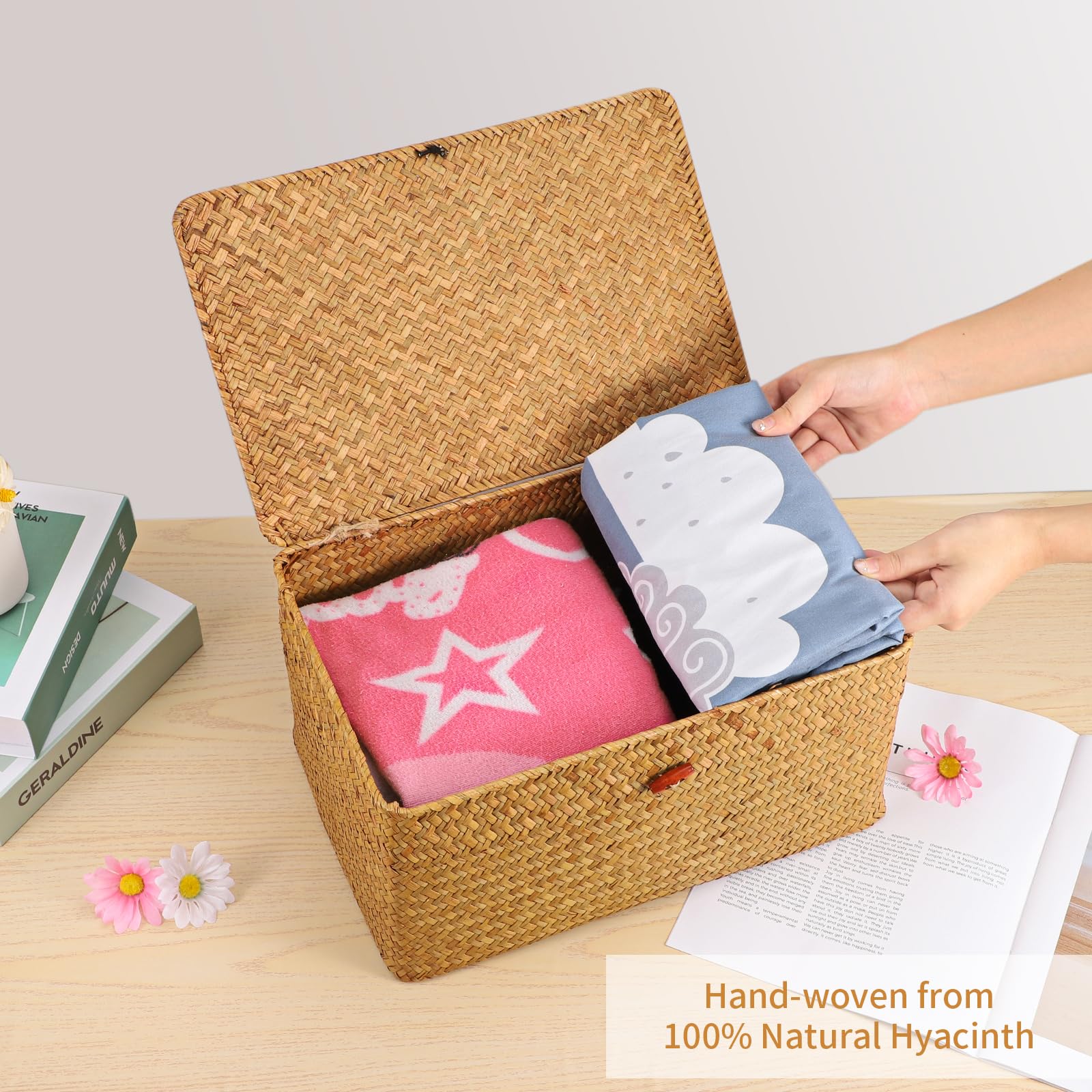 Gewebte Aufbewahrungsbox mit Deckel kann nicht nur Dinge gut verstecken, sondern auch verhindern, dass Gegenstände durch Staub kontaminiert werden. Drei verschiedene Grössen sind für die Aufbewahrung verschiedener Gegenstände zu Hause ausgelegt.
