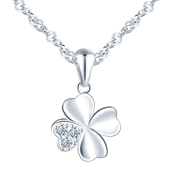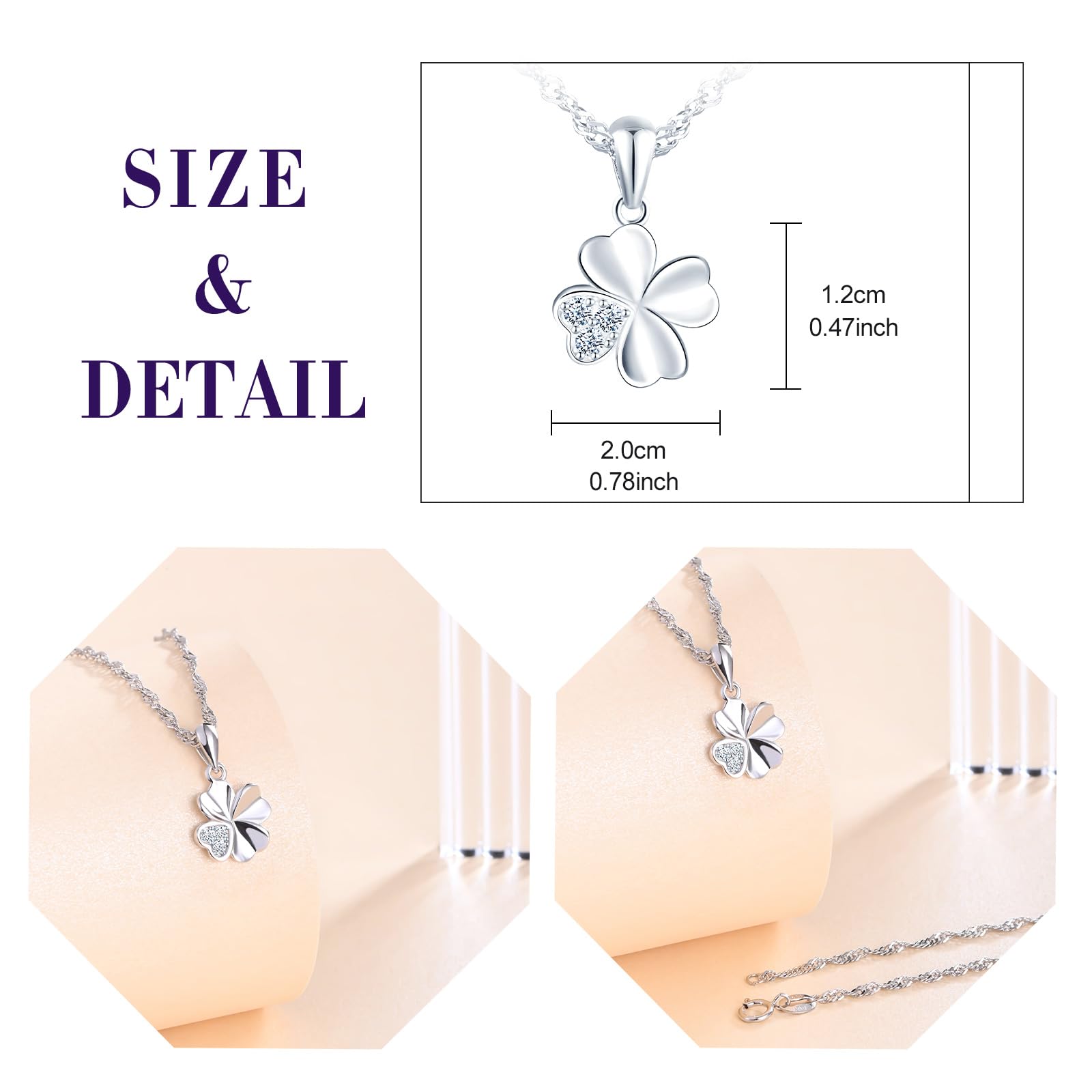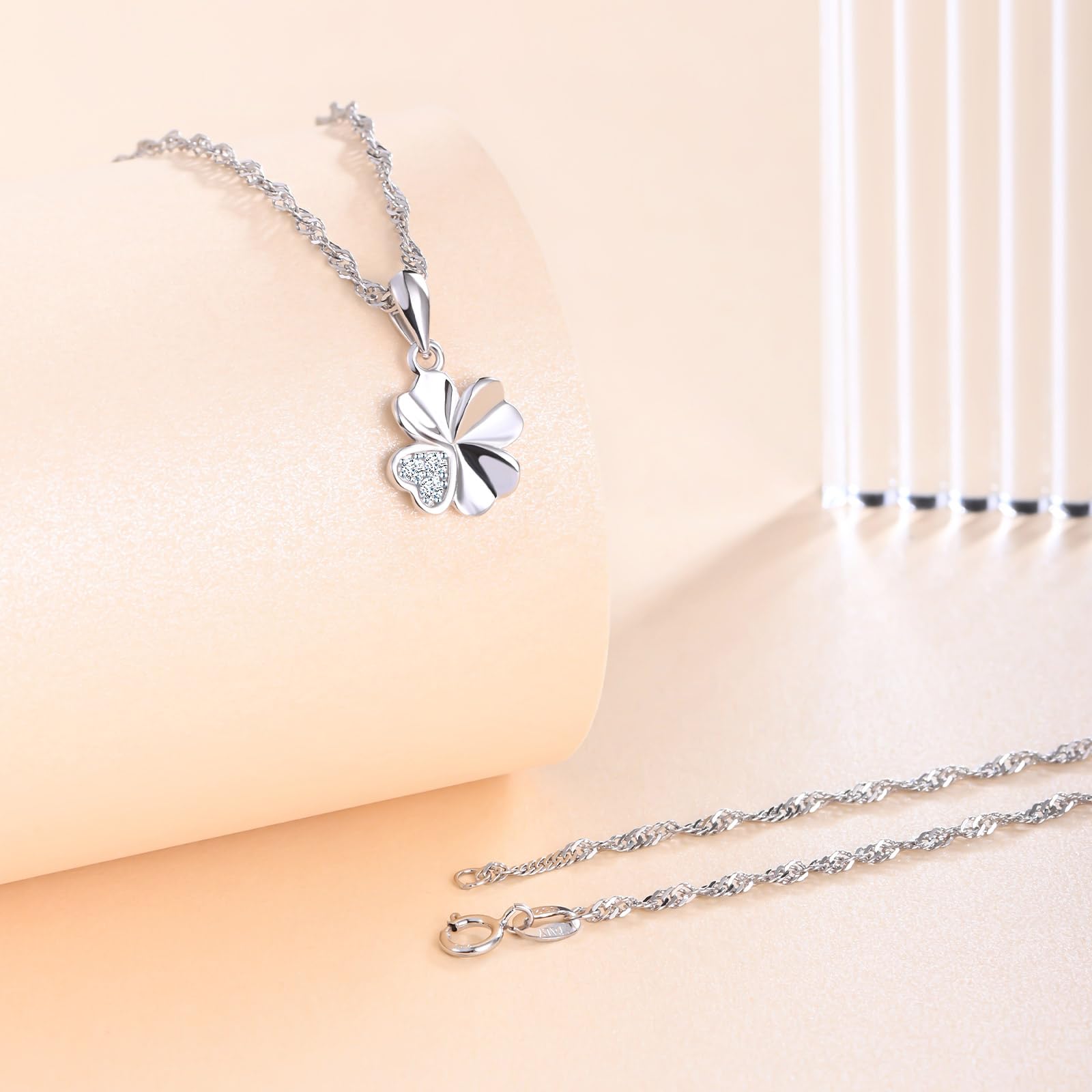 feilok Kette Damen Halskette mit Kleeblatt Zirkonia Vierblättriges Glücksbringer Anhänger aus 925 Sterling silber Halskette für Frauen Mädchen