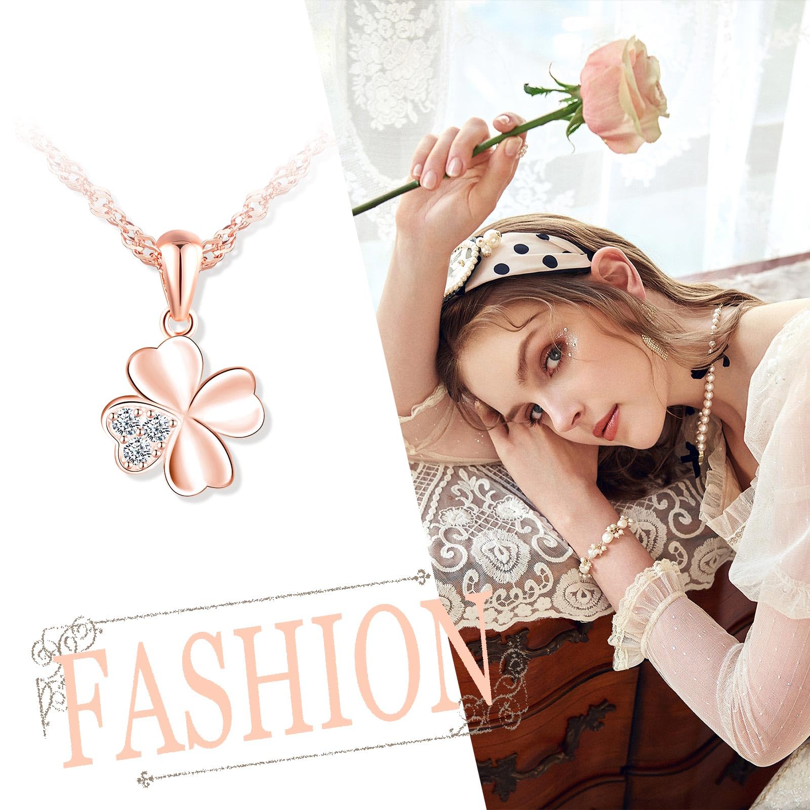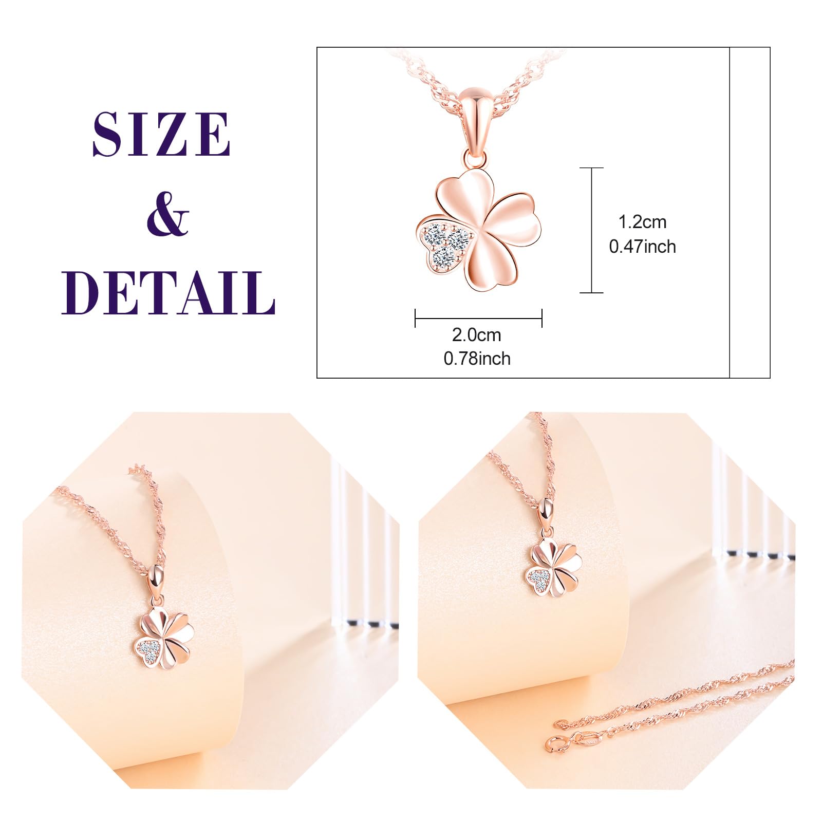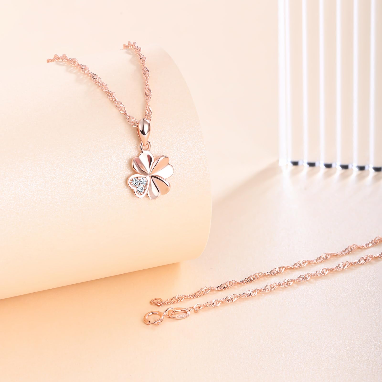 feilok Kette Damen Halskette mit Kleeblatt Zirkonia Vierblättriges Glücksbringer Anhänger aus 925 Sterling silber Halskette für Frauen Mädchen