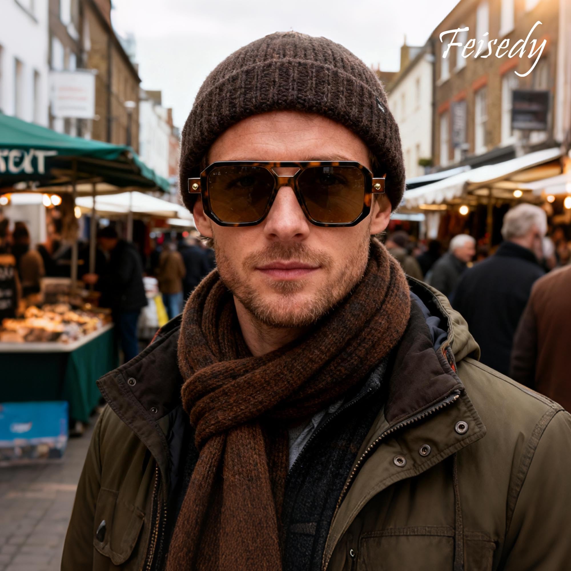 FEISEDY Retro 70er Jahre Sonnebrille Damen Herren Vintage Flache Quadratische Brille mit UV400-Schutz B2622