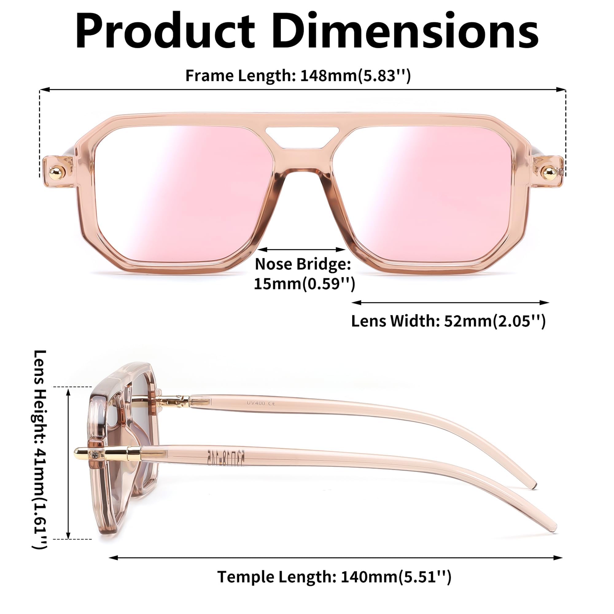 Champagner Rahmen & Rosa Verspiegelt Linsen