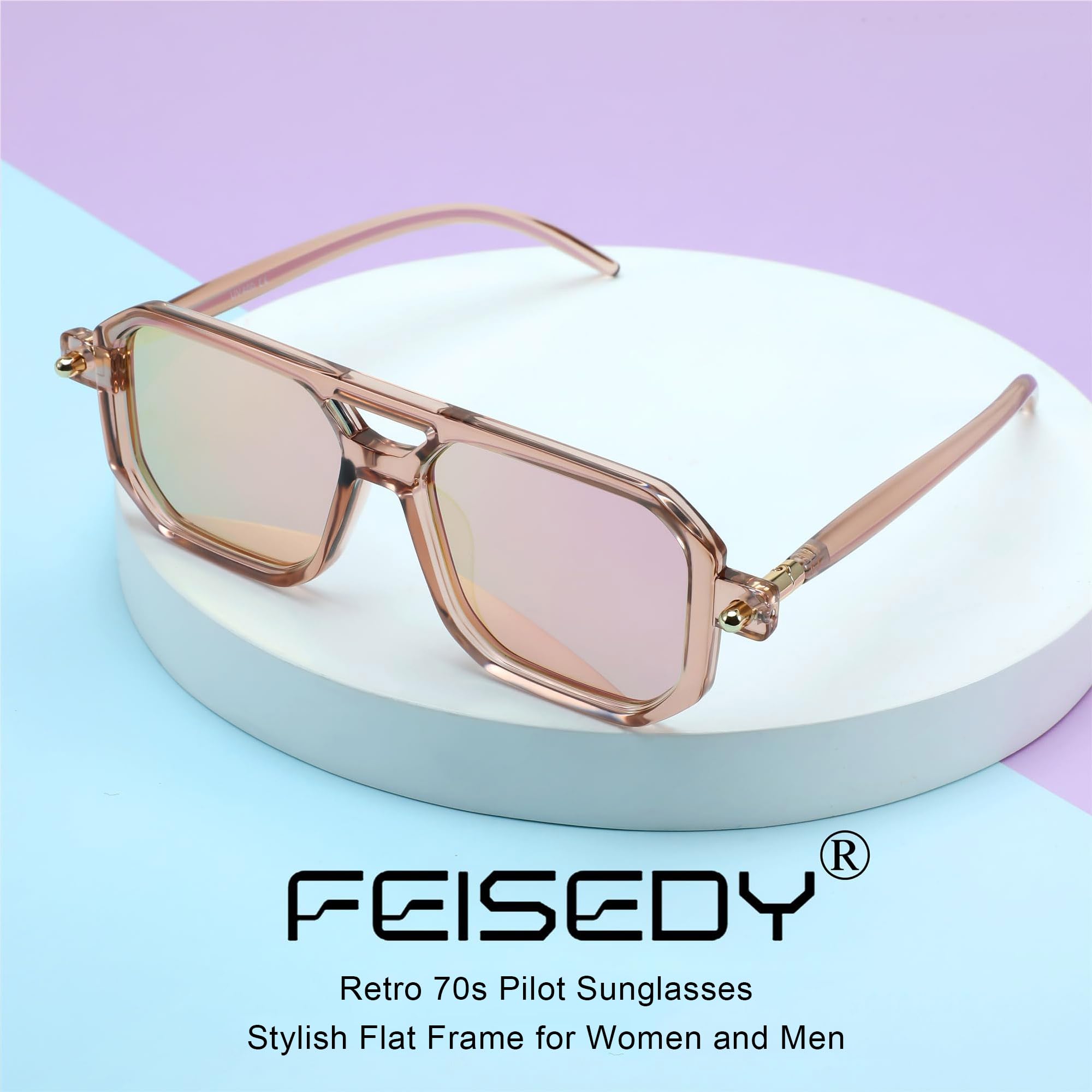 FEISEDY Retro 70er Jahre Sonnebrille Damen Herren Vintage Flache Quadratische Brille mit UV400-Schutz B2622
