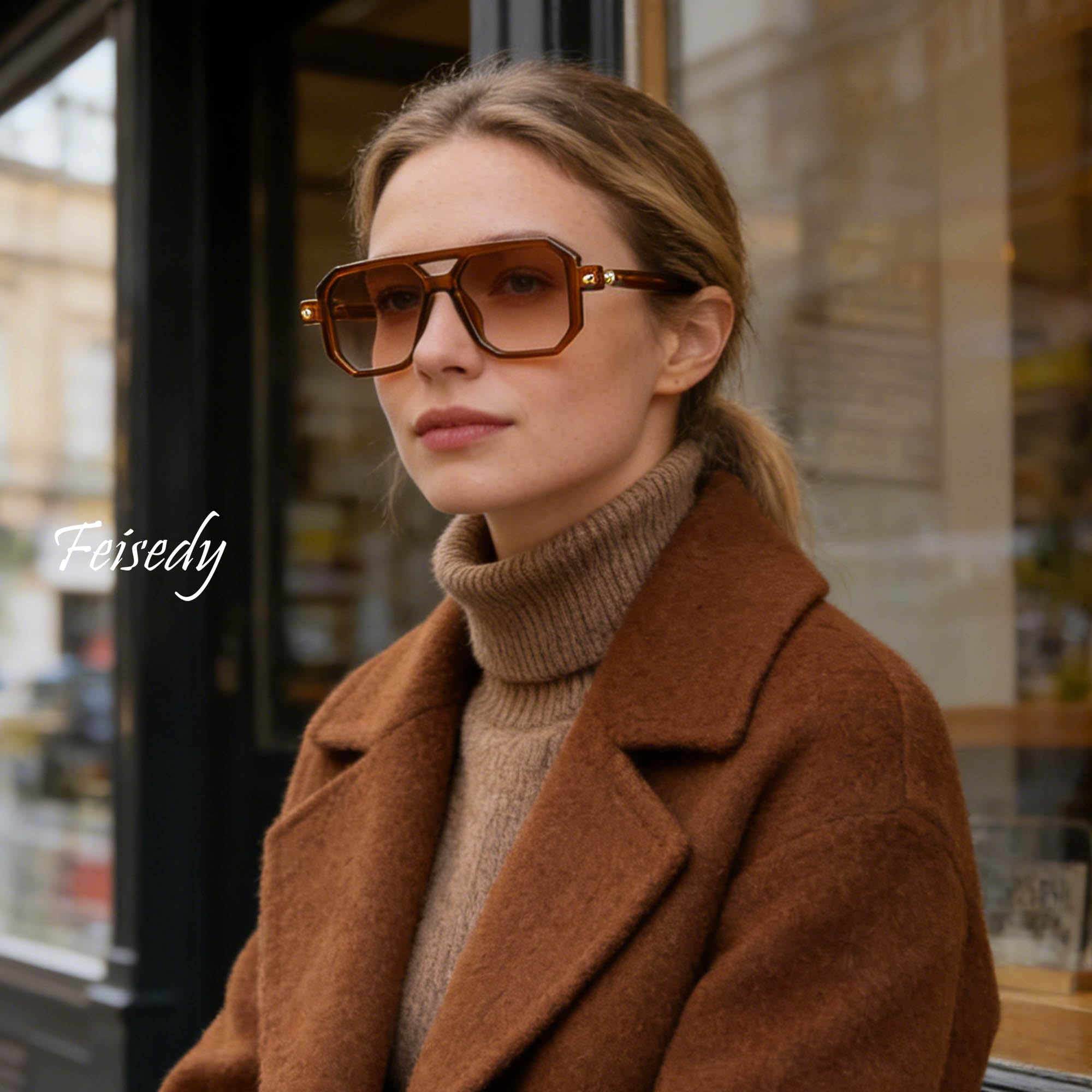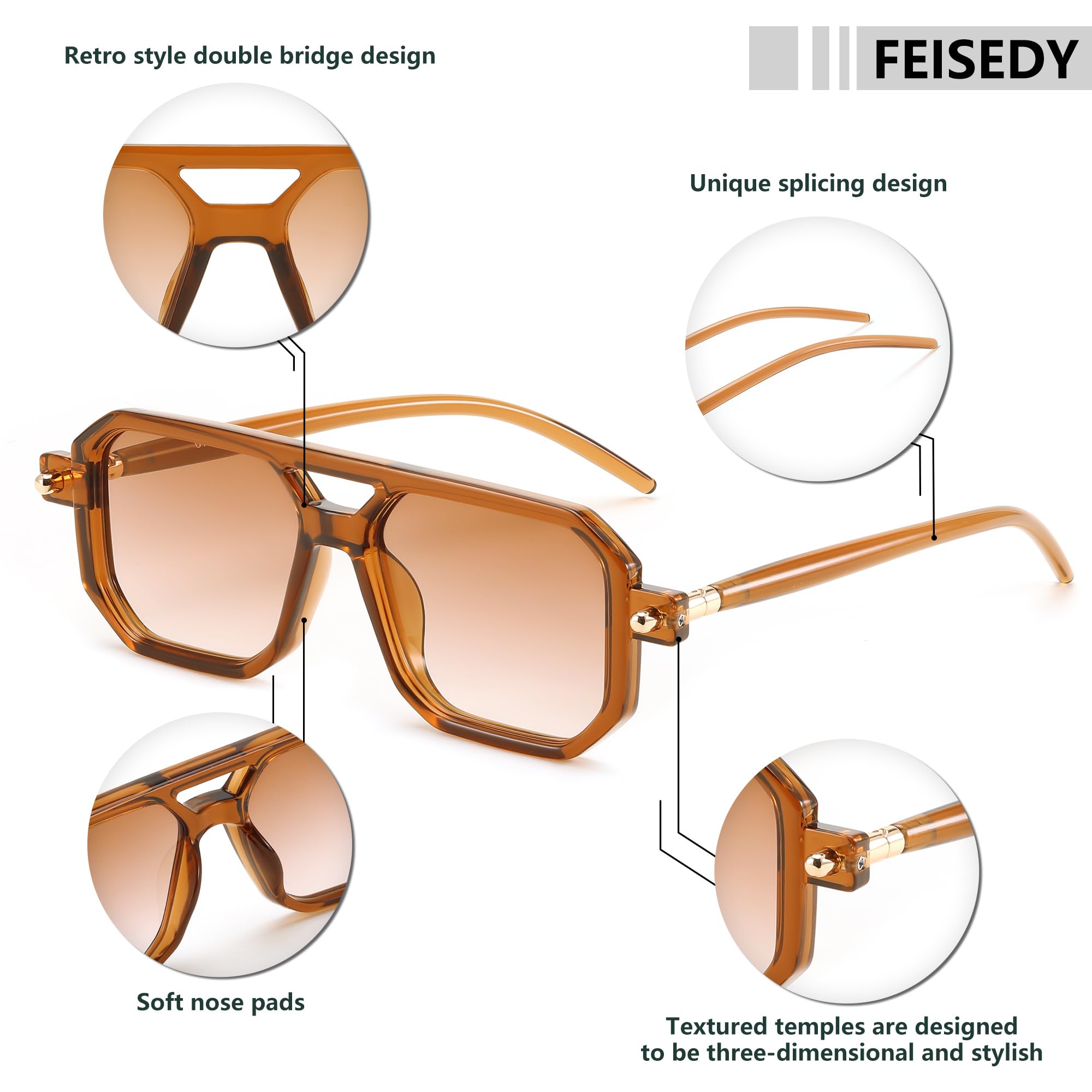 FEISEDY Retro 70er Jahre Sonnenbrille Damen Herren Vintage Flache Quadratische Brille mit UV400-Schutz B2622