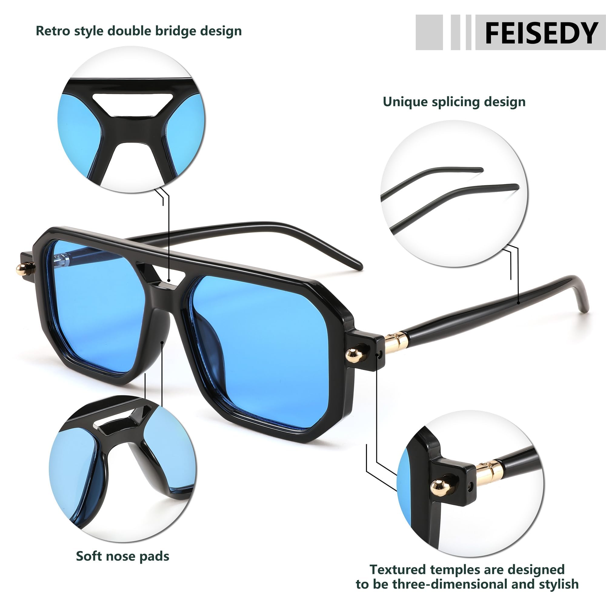FEISEDY Retro 70er Jahre Sonnebrille Damen Herren Vintage Flache Quadratische Brille mit UV400-Schutz B2622