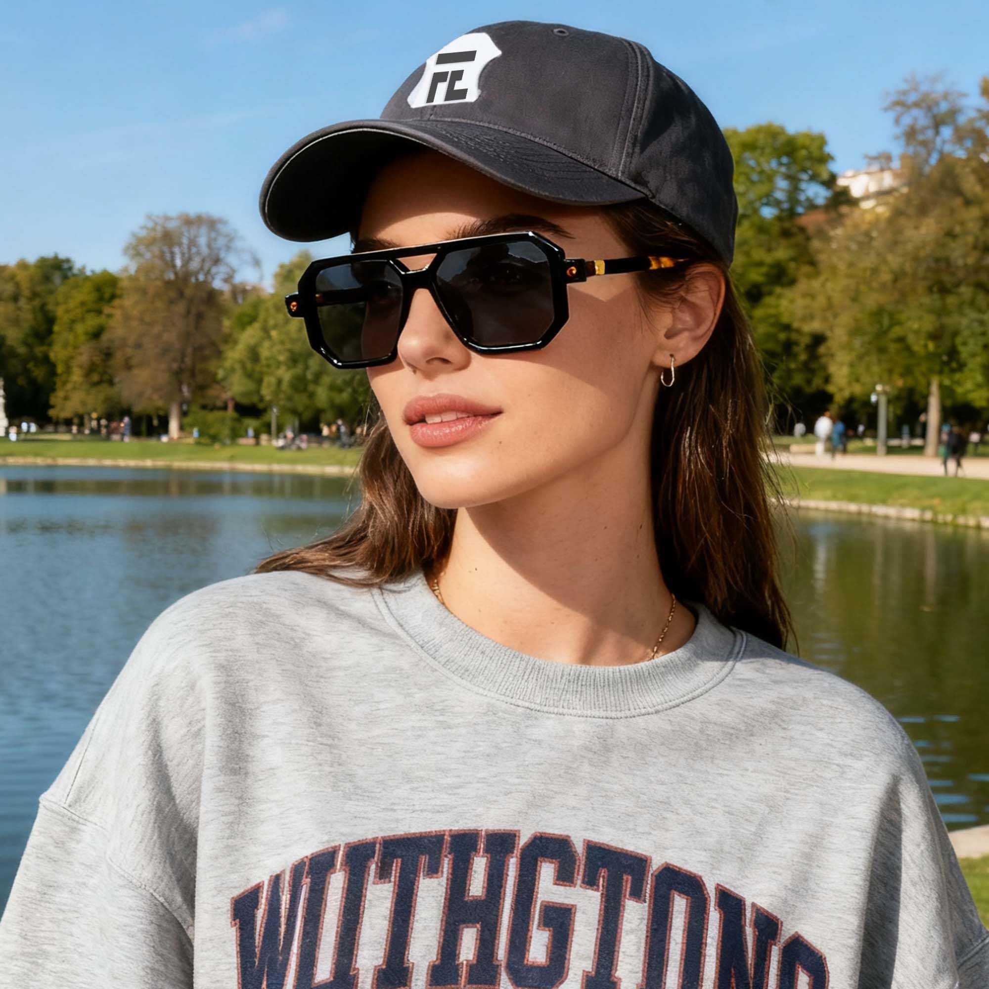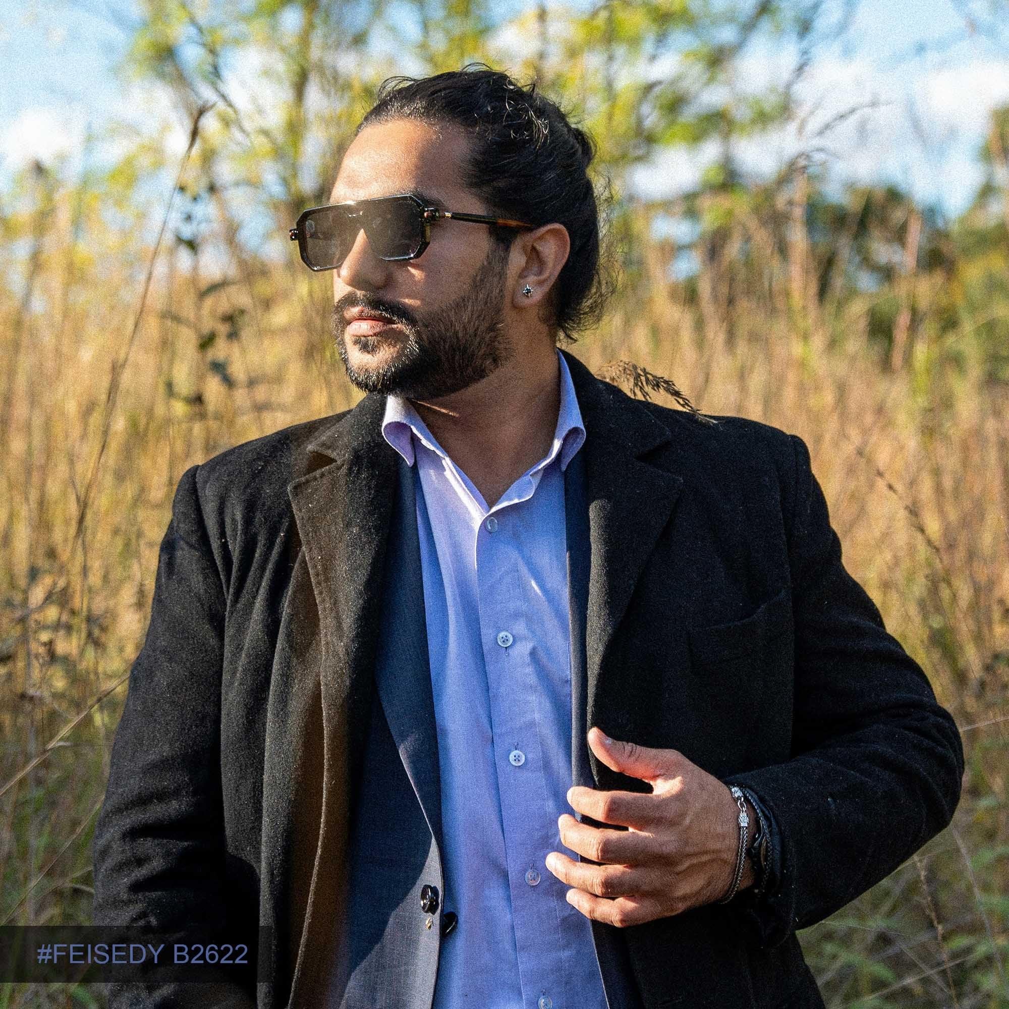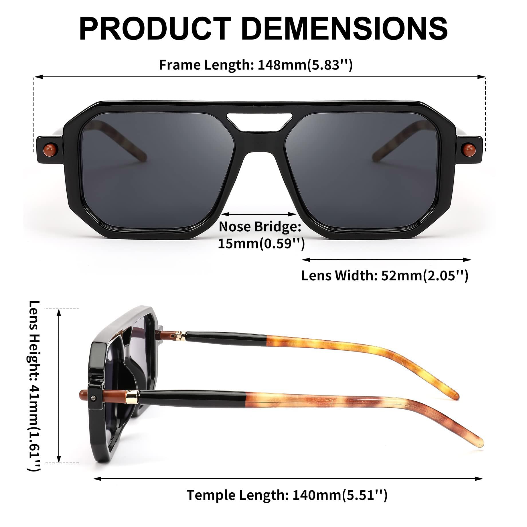 FEISEDY Retro 70er Jahre Sonnebrille Damen Herren Vintage Flache Quadratische Brille mit UV400-Schutz B2622