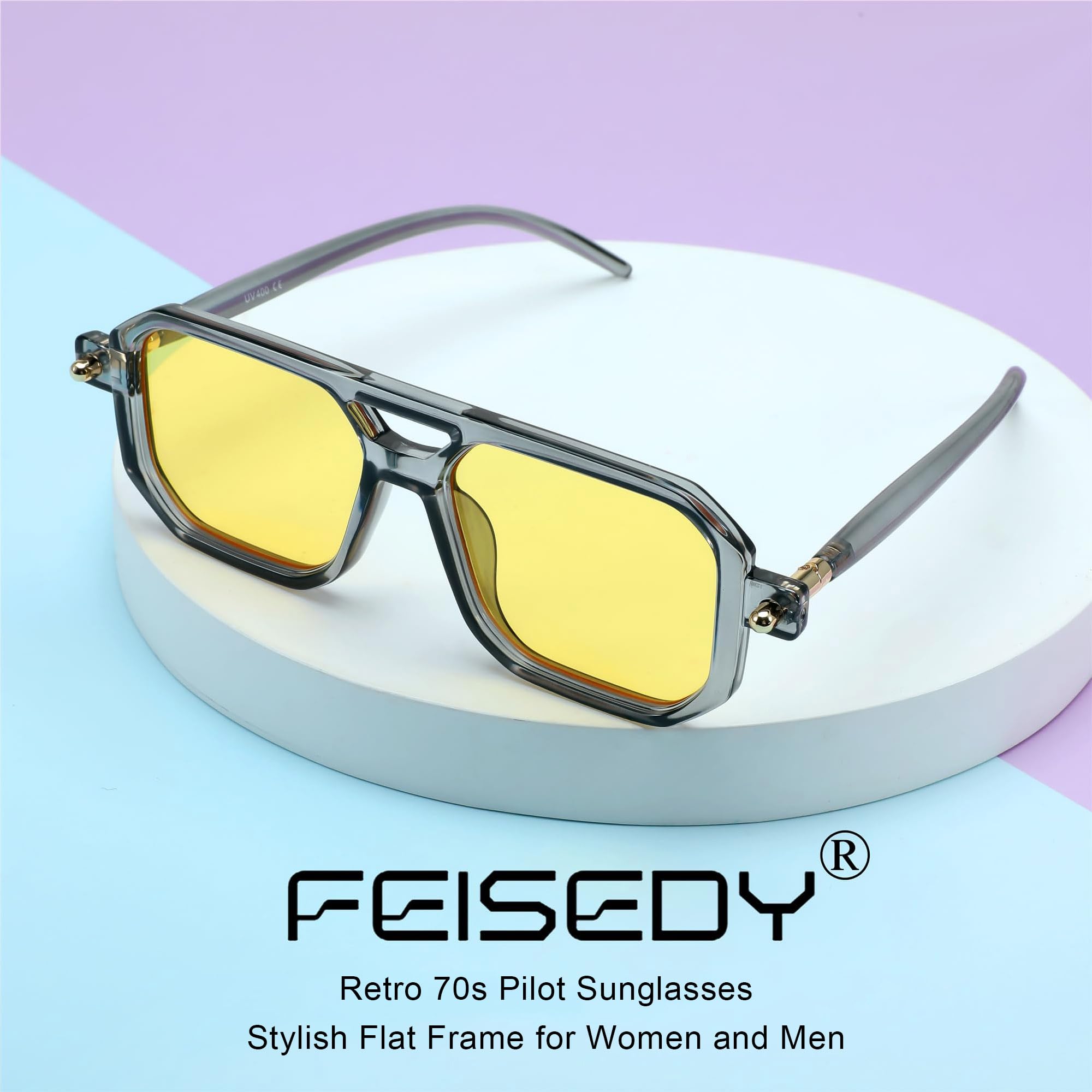 FEISEDY Retro 70er Jahre Sonnebrille Damen Herren Vintage Flache Quadratische Brille mit UV400-Schutz B2622