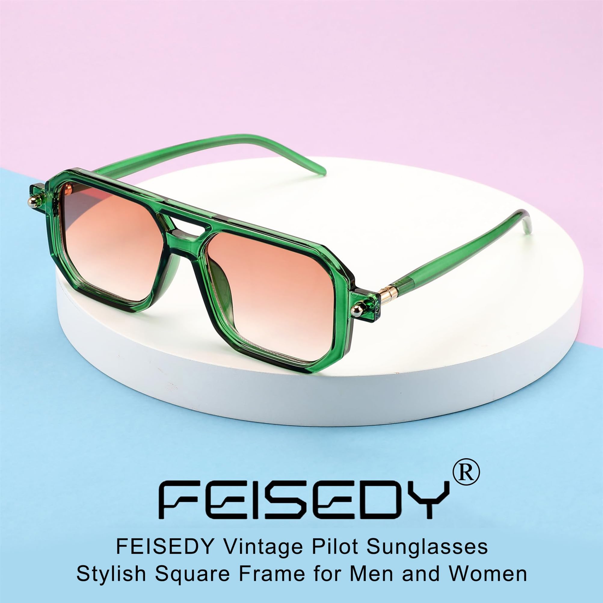 FEISEDY Retro 70er Jahre Sonnebrille Damen Herren Vintage Flache Quadratische Brille mit UV400-Schutz B2622