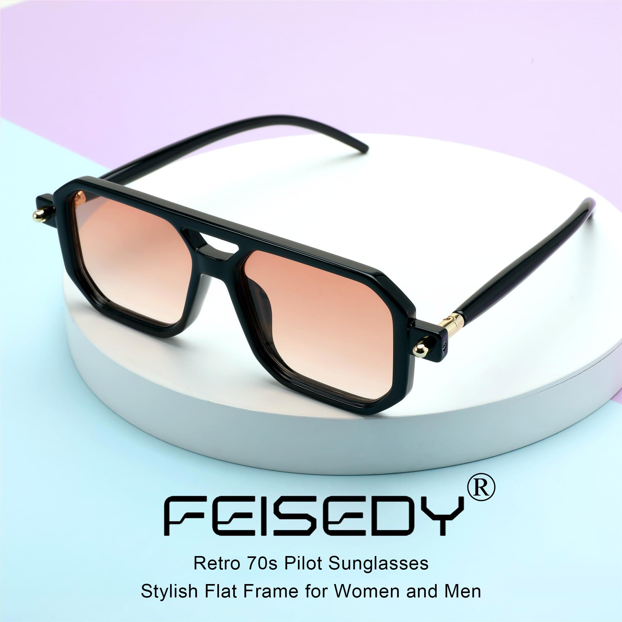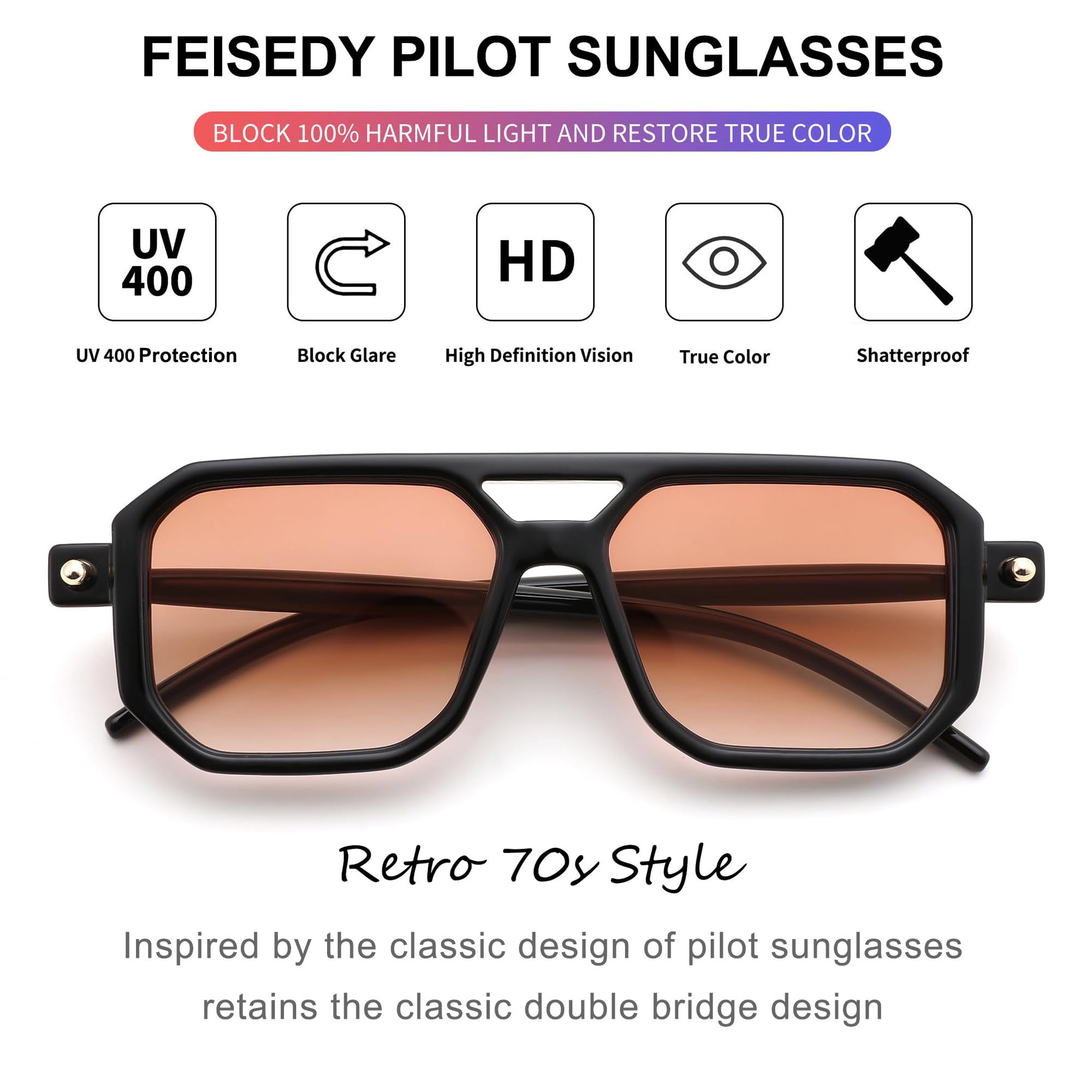 FEISEDY Retro 70er Jahre Sonnebrille Damen Herren Vintage Flache Quadratische Brille mit UV400-Schutz B2622