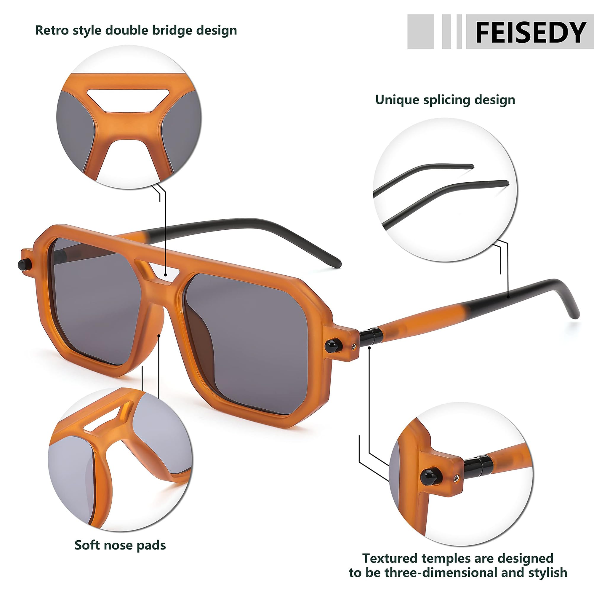 FEISEDY Retro 70er Jahre Sonnebrille Damen Herren Vintage Flache Quadratische Brille mit UV400-Schutz B2622