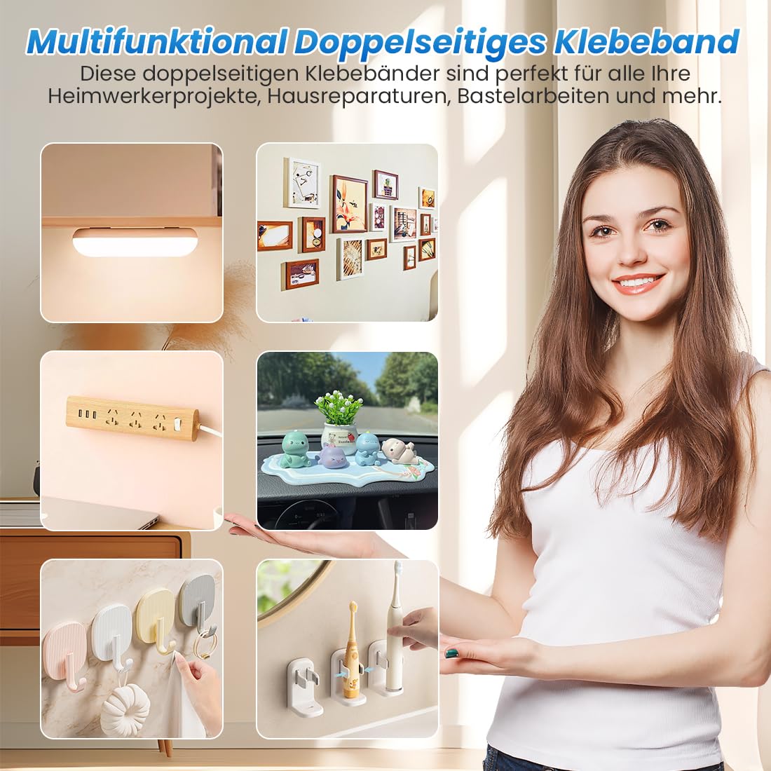 1. Bitte kleben Sie das Band nicht doppelseitig auf sehr weiche, robuste, textur, fettoberfläche oder lederoberfläche.