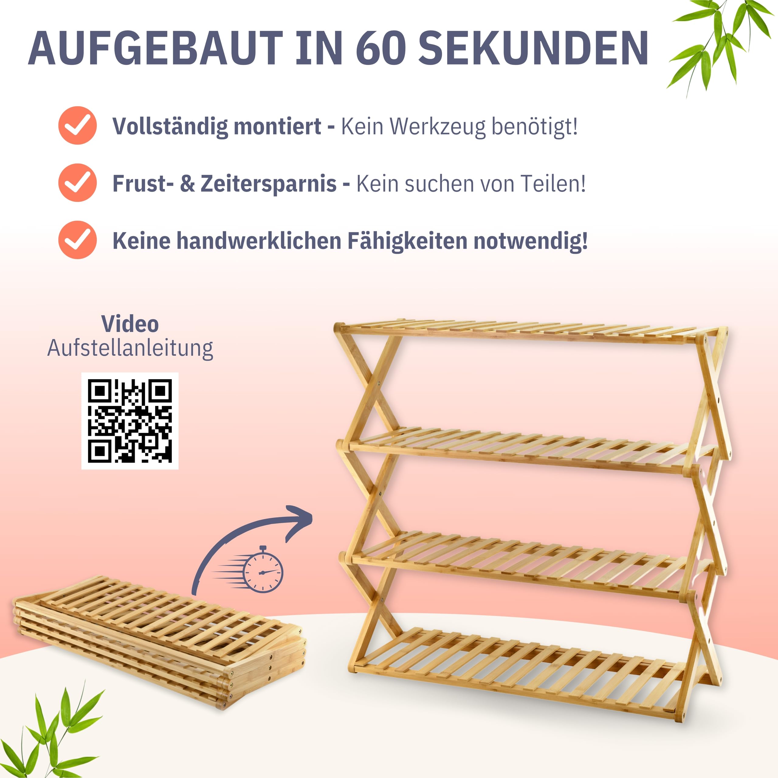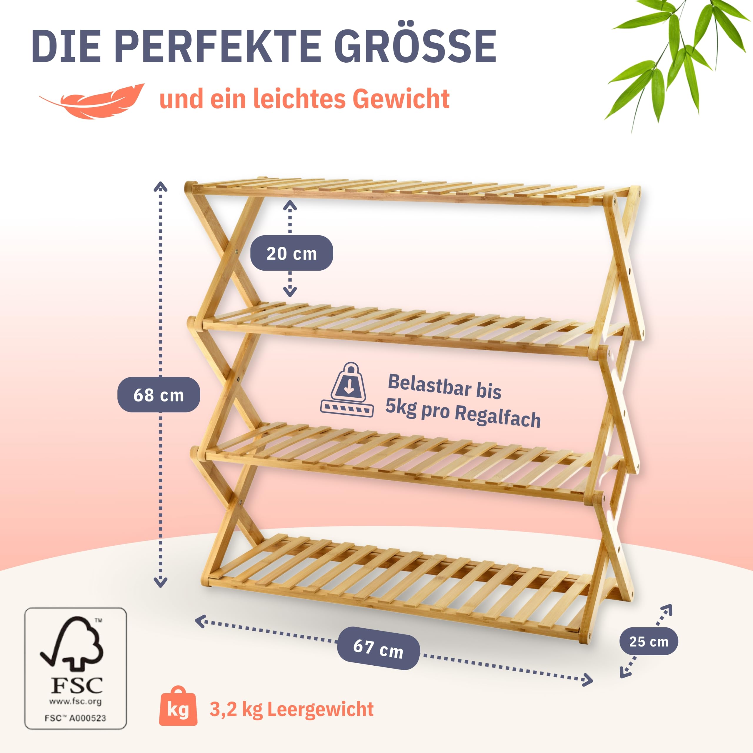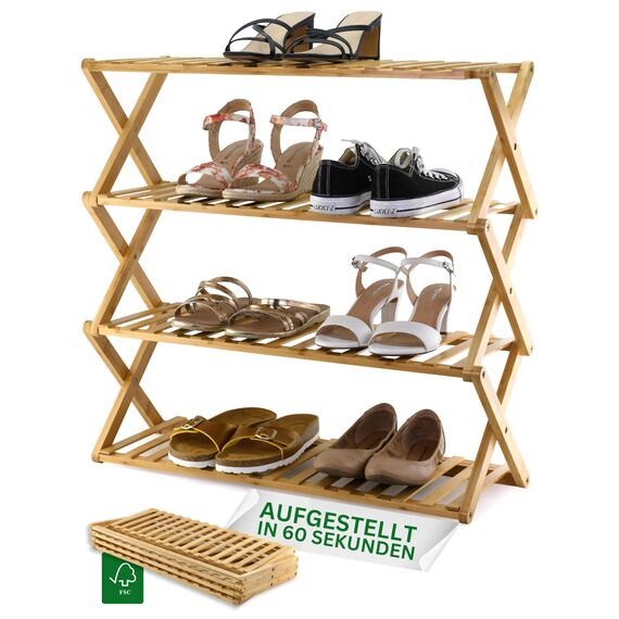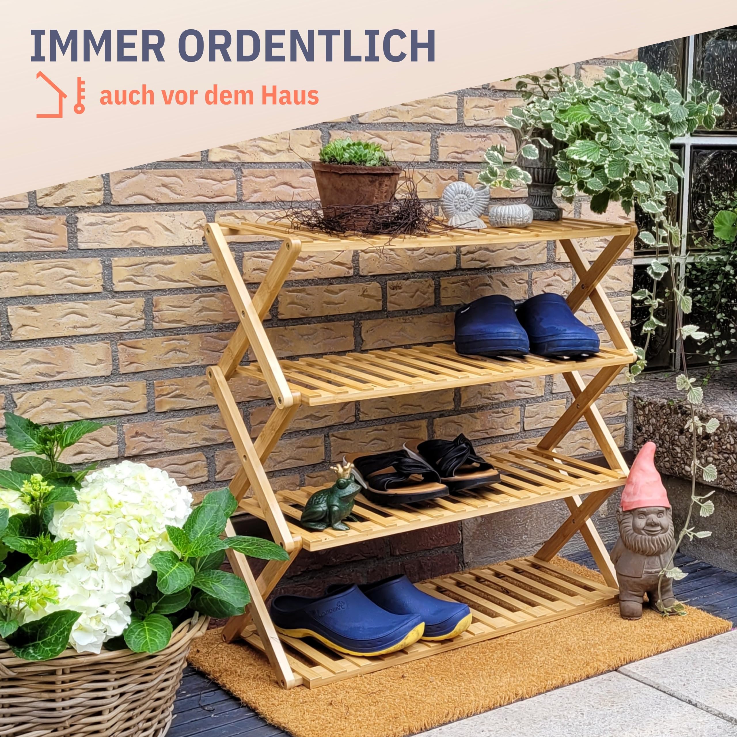 Felino® Schuhregal Schuhablage Organizer aus Bambus Holz offen | 70cm lang | Schuhorganizer offenes Regal klappbar auch für Camping
