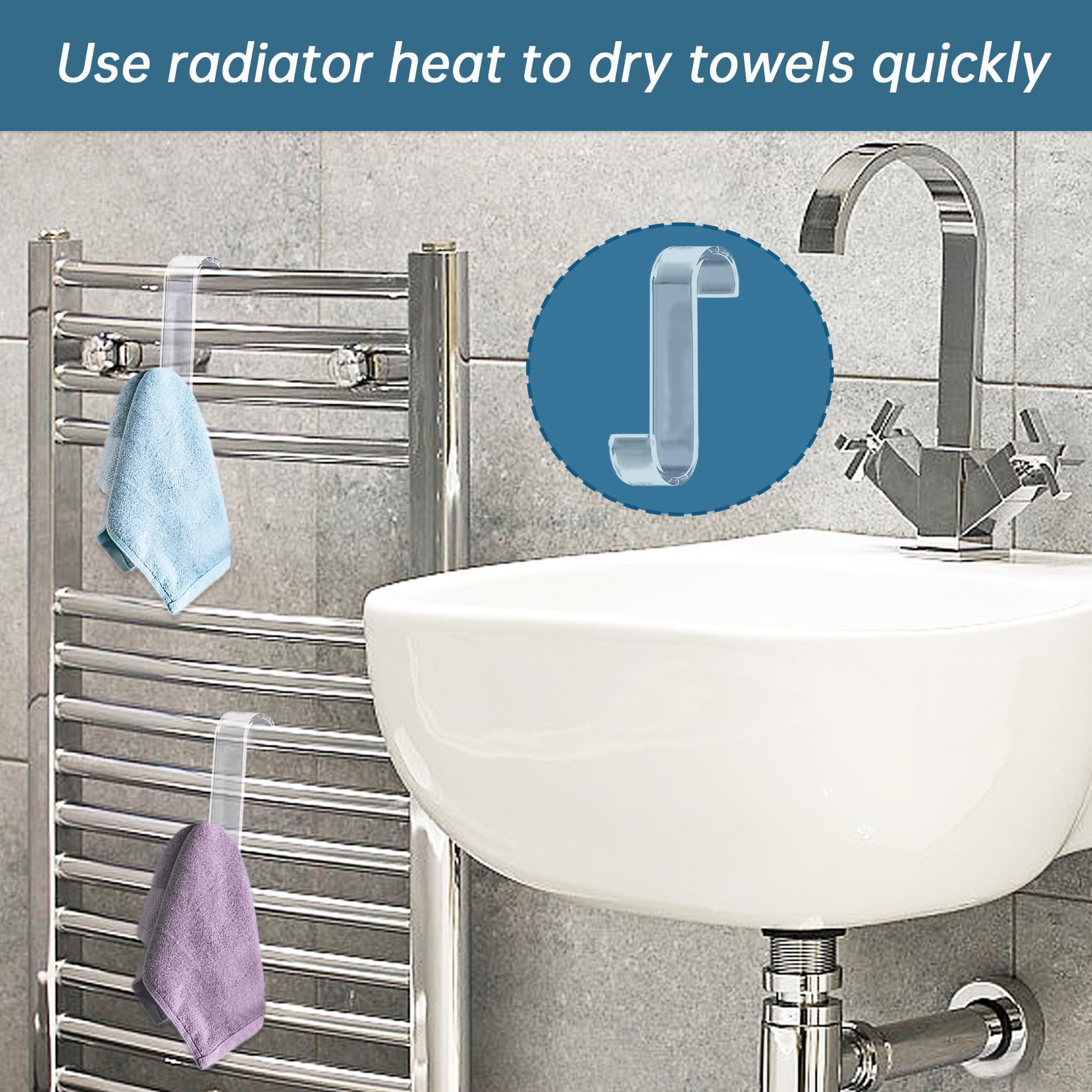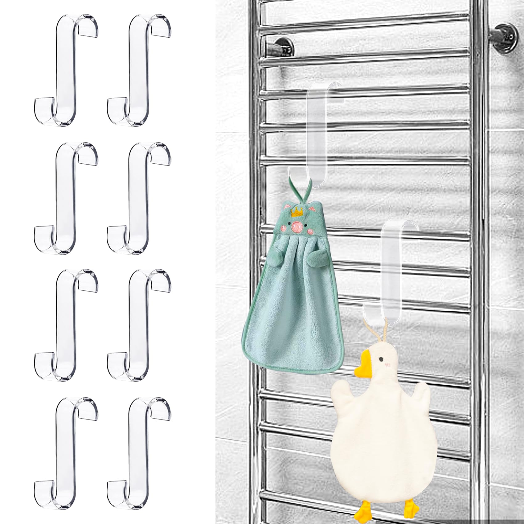 Fengxunzmm 8 Stück Haken für Rundheizkörper, Haken zum Einhängen für Heizkörper, Handtuchhalter Heizung, S Haken Kunststoff zum Aufhängen, für alle Standard Radiator, Transparent