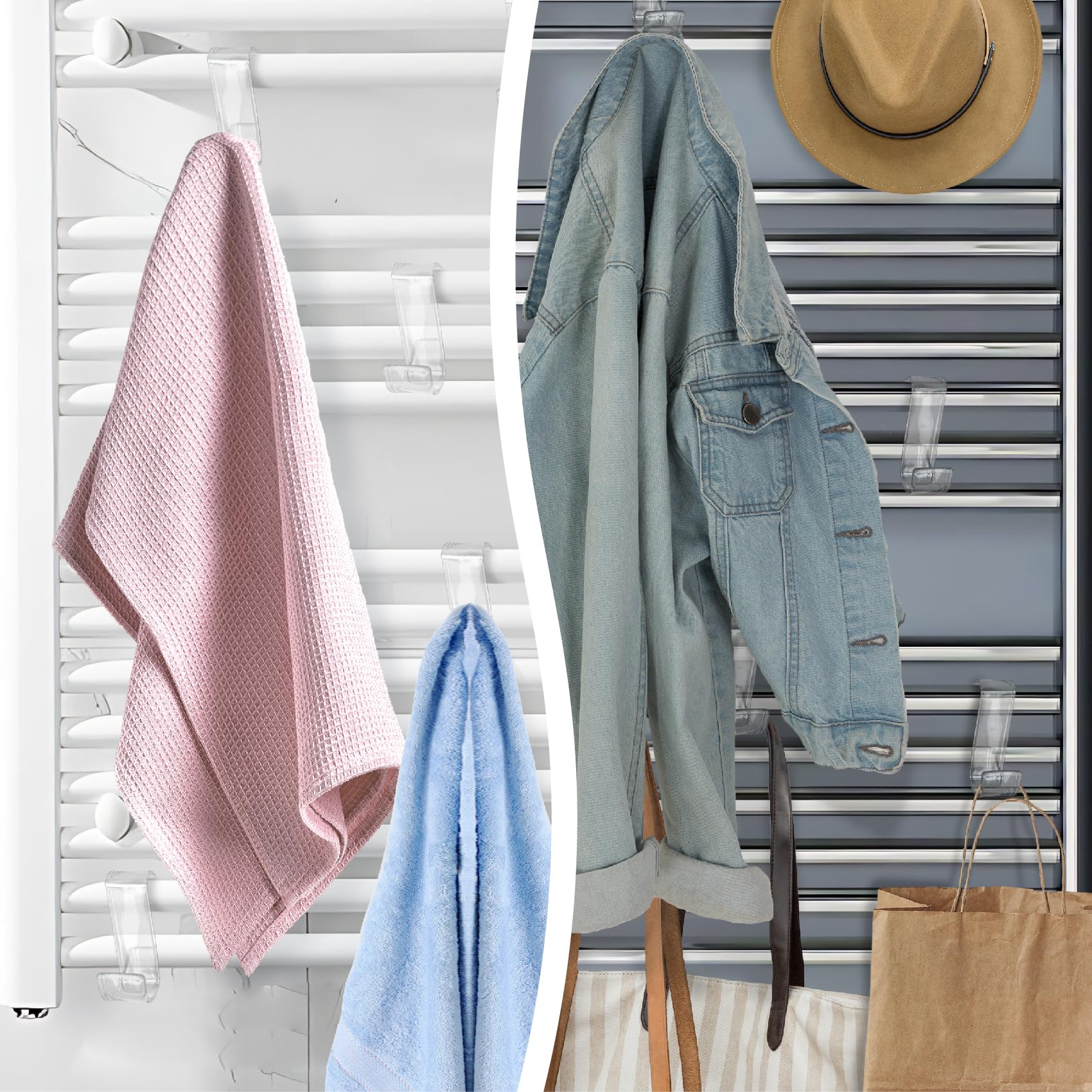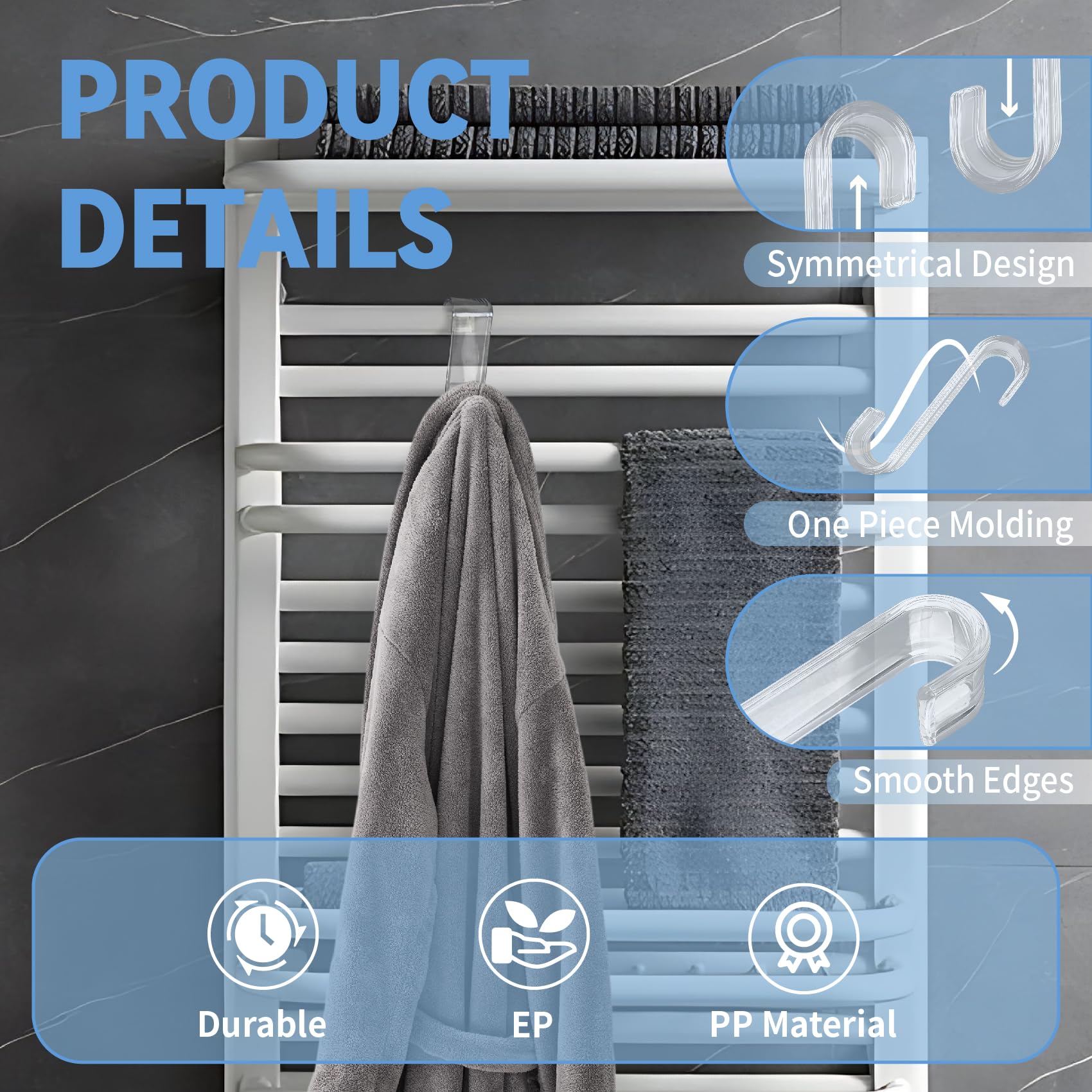 Fengxunzmm 12 Stück Haken für Rundheizkörper, Haken zum Einhängen für Heizkörper, Handtuchheizkörper Haken, S Haken Kunststoff zum Aufhängen, für alle Standard Radiator, Transparent