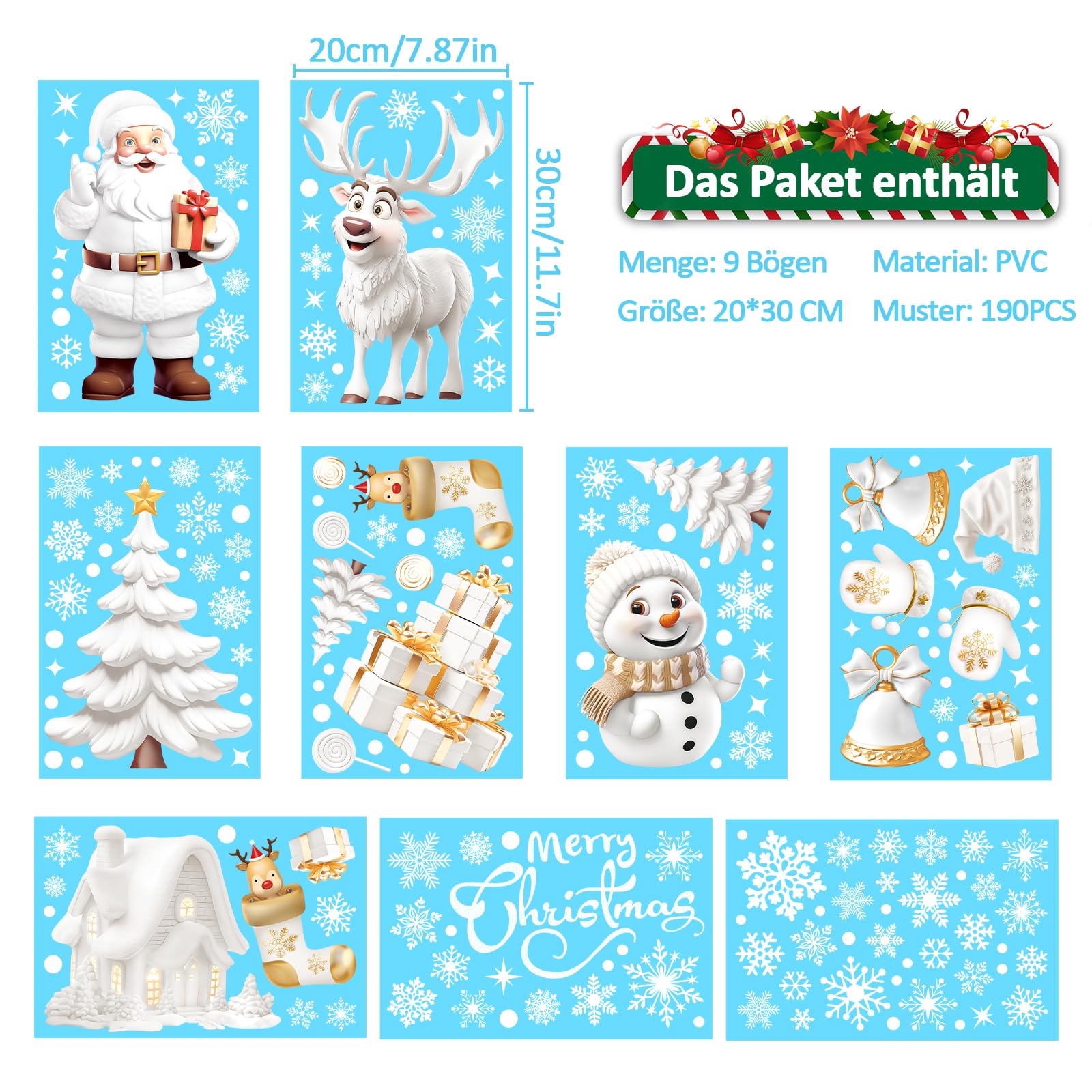 Paket beinhaltet: 9 Blätter Fensterbilder für Weihnachten