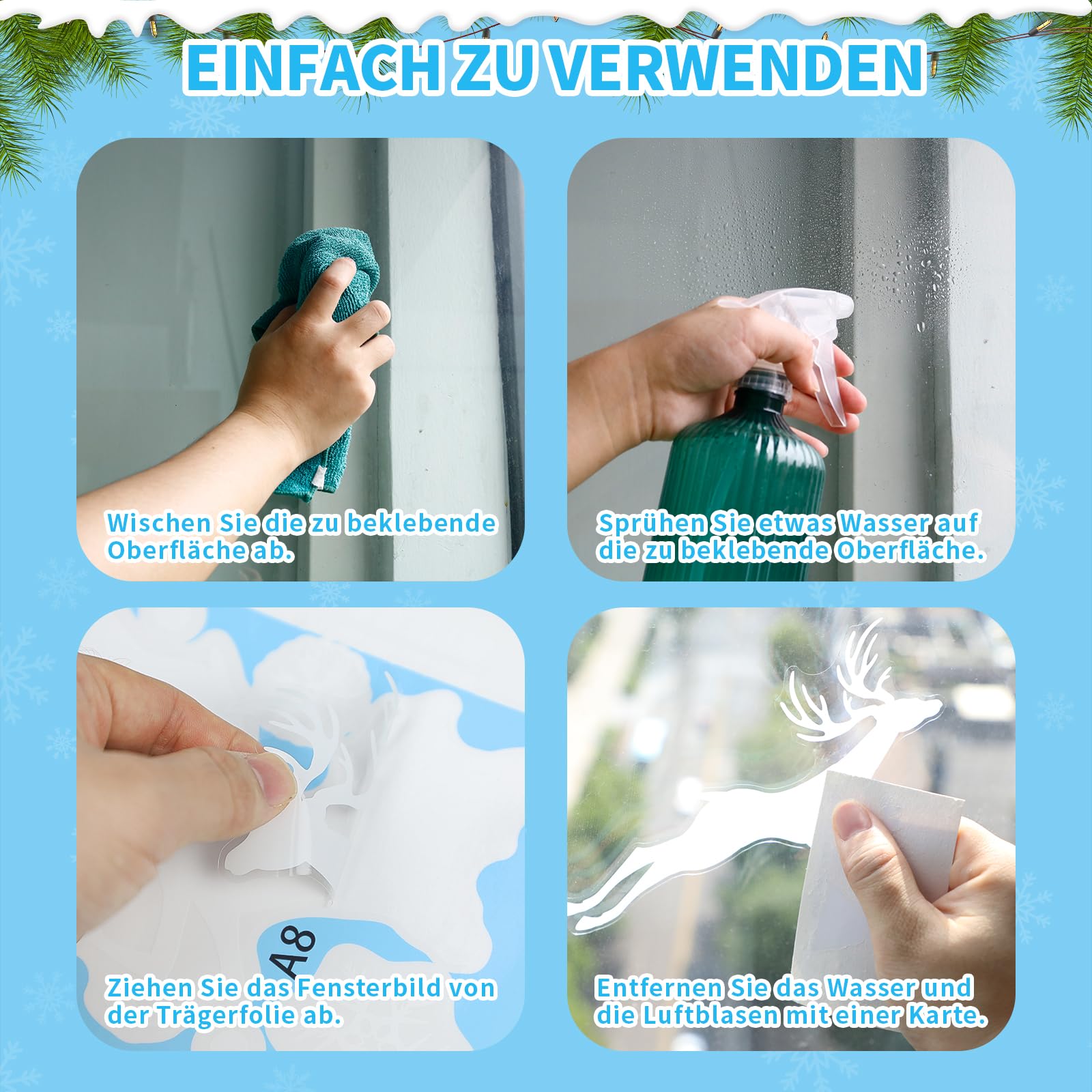 ❄Breite Anwedung: Dieser Fensterbilder für Weihnachten können auf jeder glatten, ebenen Oberfläche wie Glastüren, Spiegel, Fenster, Küchen- oder Badezimmerfliesen angebracht werden.