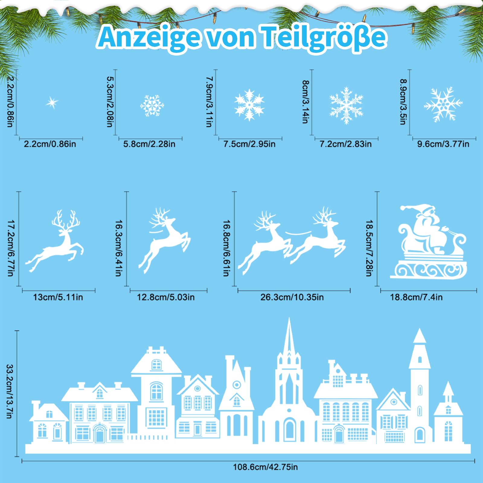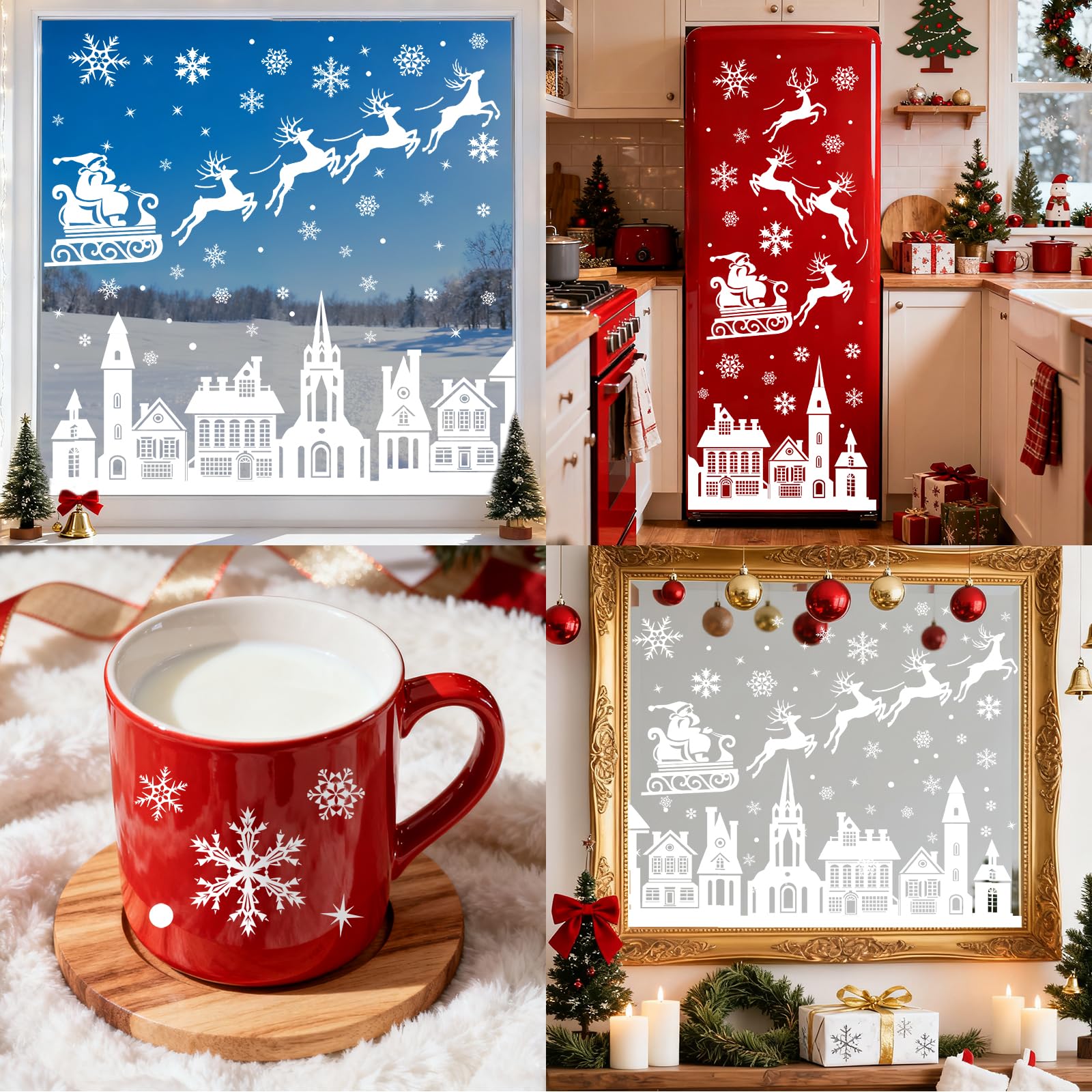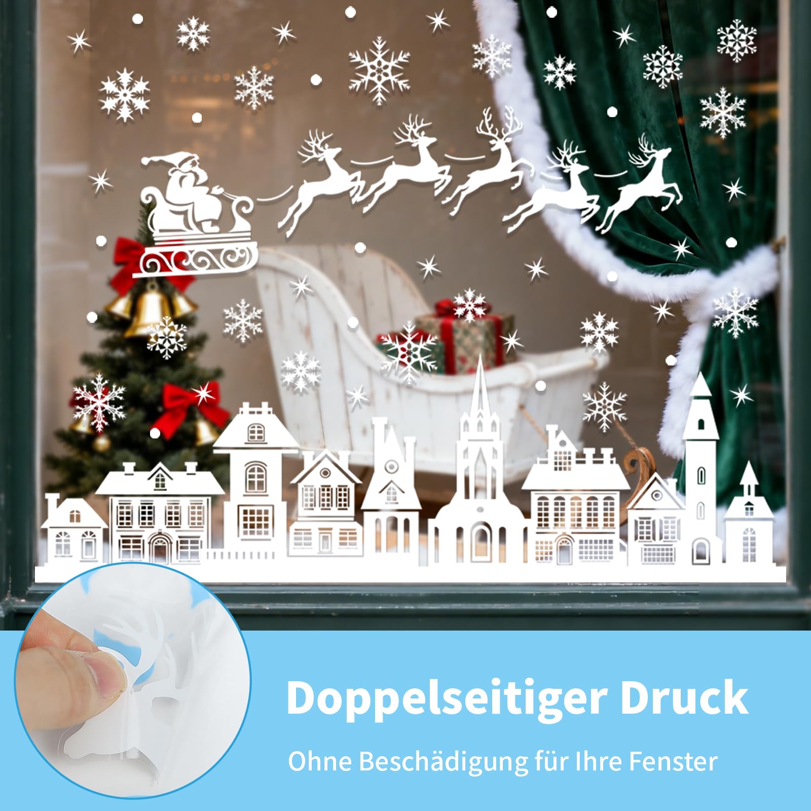 Nepfaivy Fensterbilder Weihnachten Selbstklebend Fensterdeko - 134PCS Wiederverwendbare Statische Fenstersticker mit Häuser und Schneeflocken, Winter Fensteraufkleber Weihnachtsfensterbilder Deko