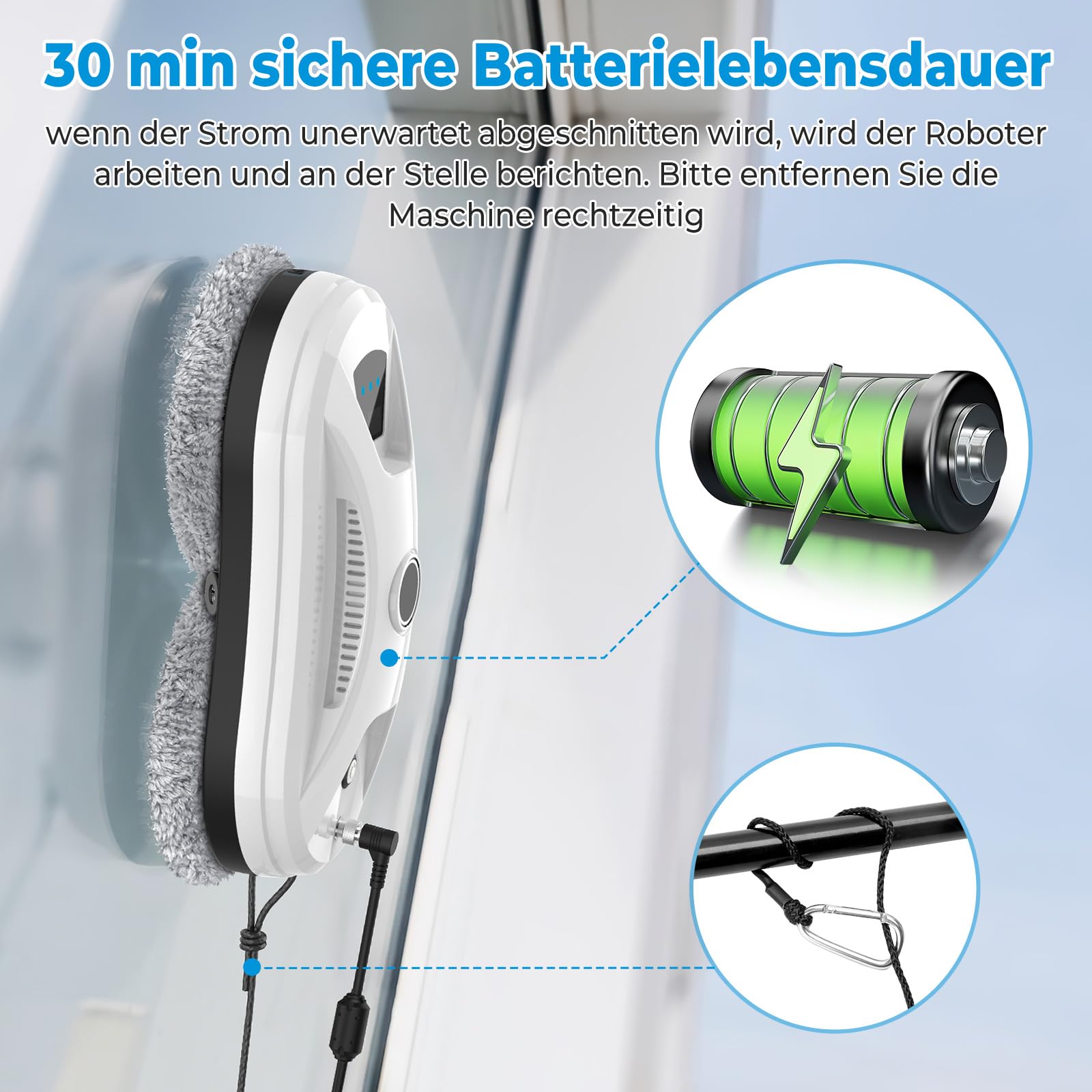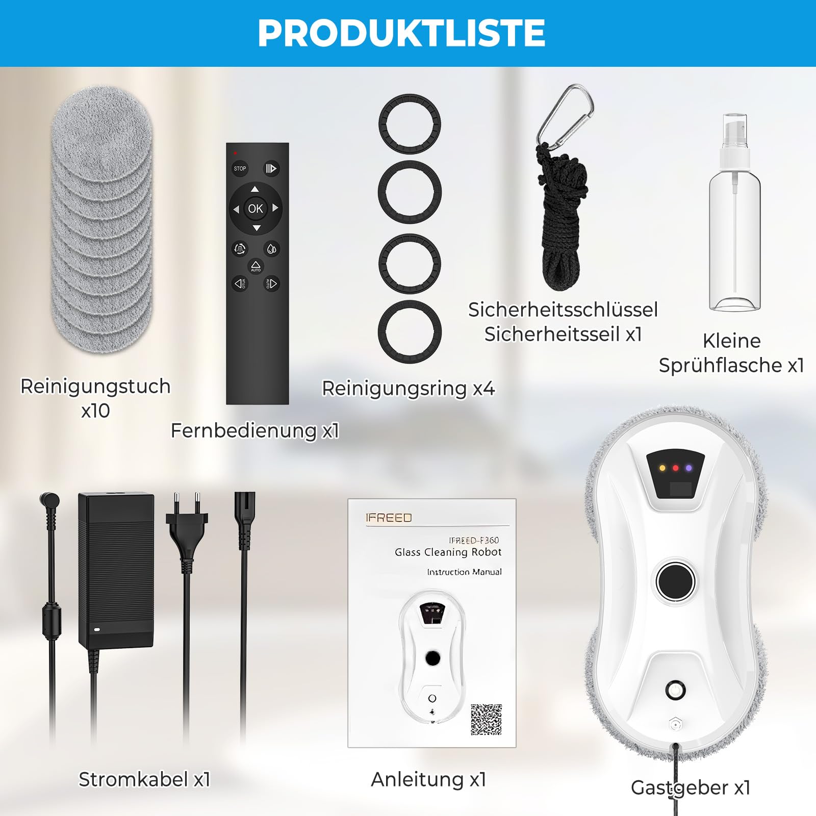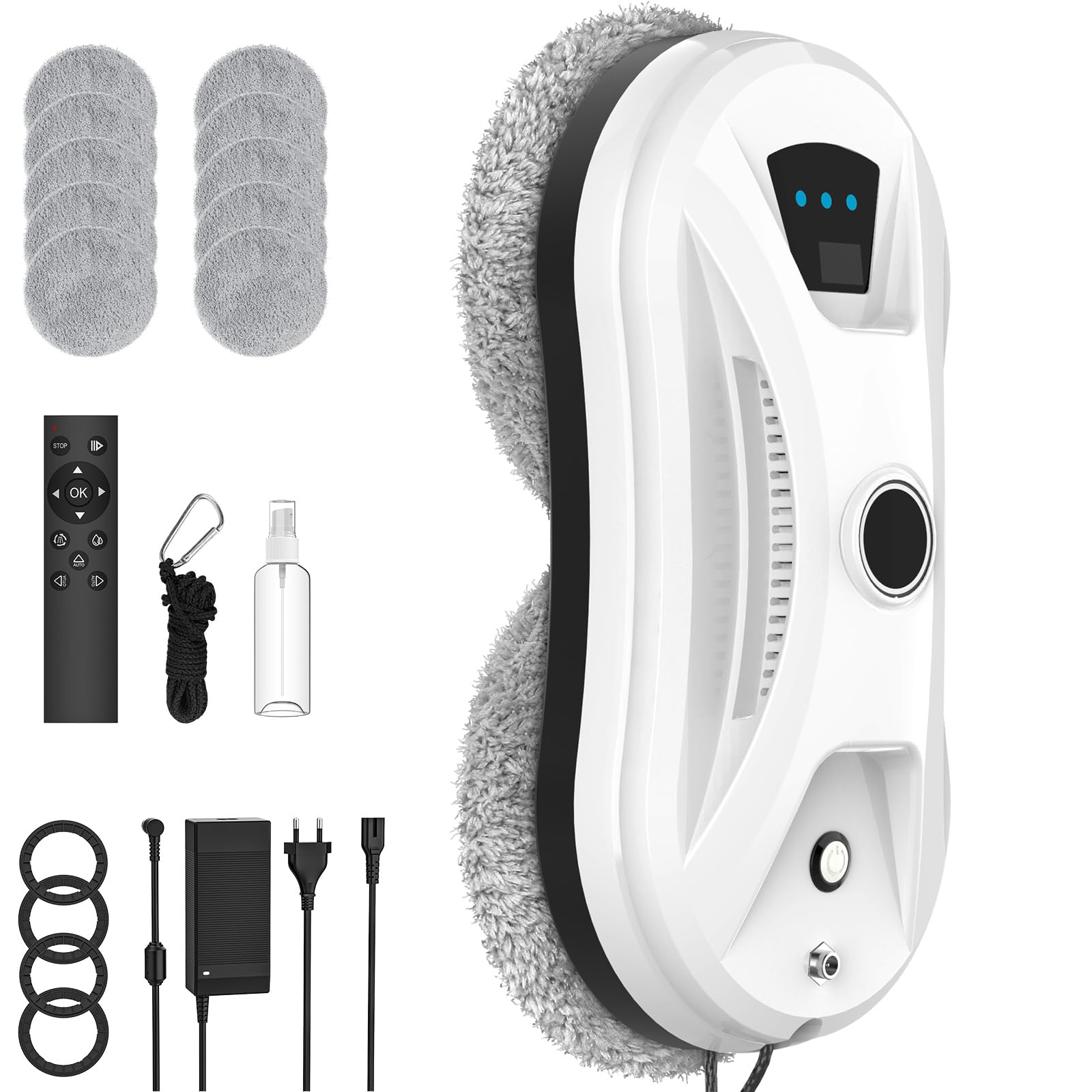 Fensterputzroboter, 5600 Pa Fensterroboter mit Automatische Doppel-Sprühfunktion, 3 Reinigungsmodi, Kantenerkennungssystem, Fernbedienung, Sicherheitssystem, für Glas, Fliesen, Spiegel, 10 Tücher