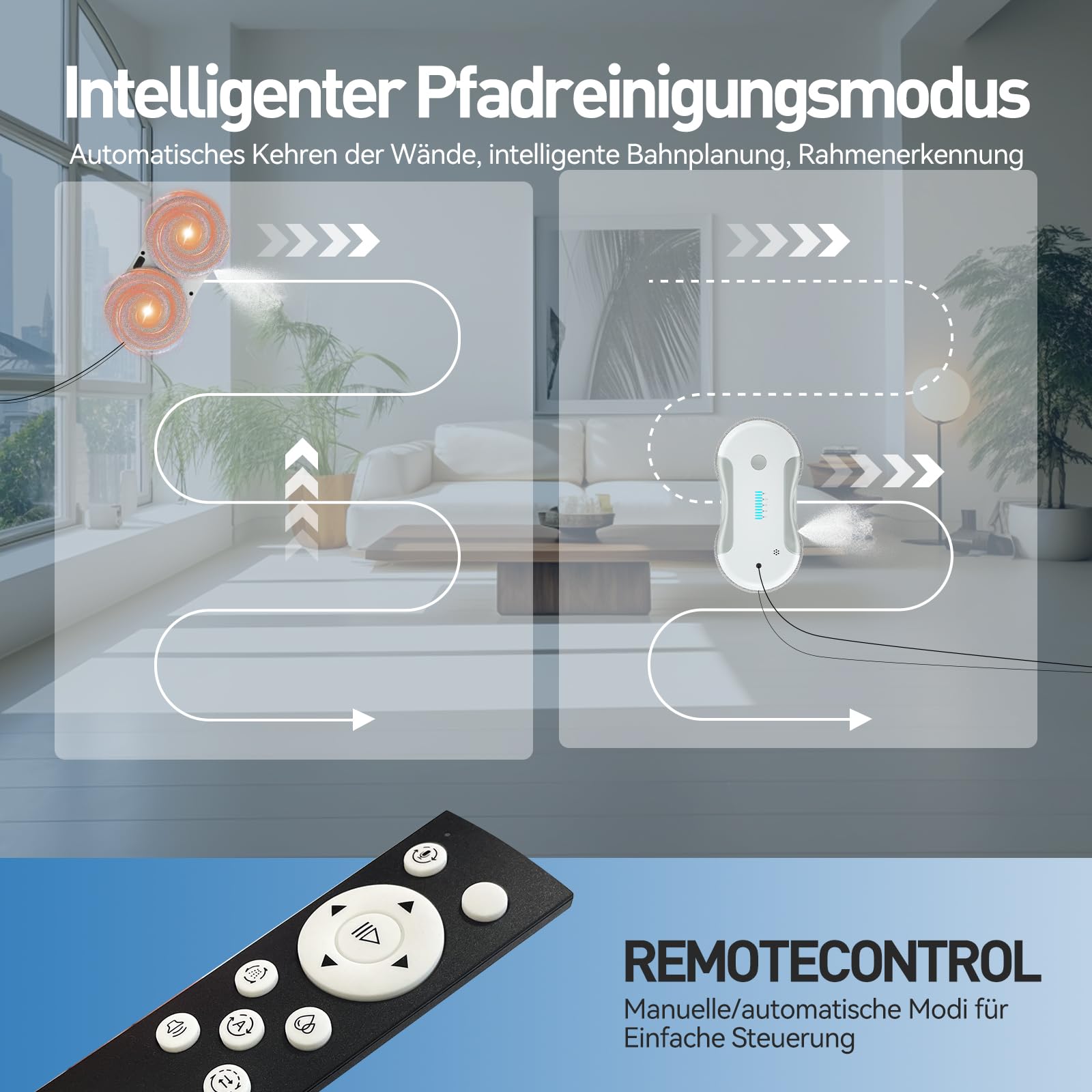 Fensterputzroboter, Fensterreiniger Roboter Elektrisch mit 80ml Doppel-Wassersprühsystem, 5800 Pa Saugleistung, Fensterroboter mit Mehrsprachen-Umschaltung Geeignet für Innen- und Aussenfenster