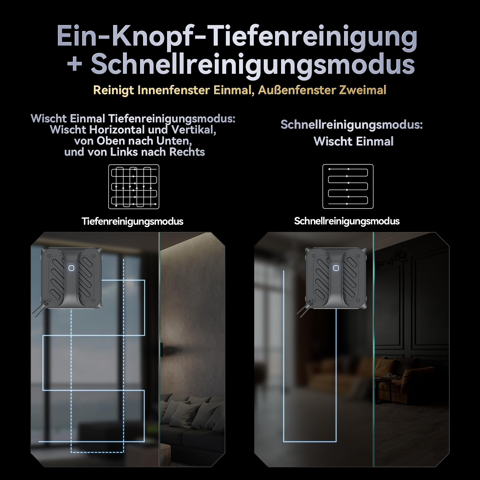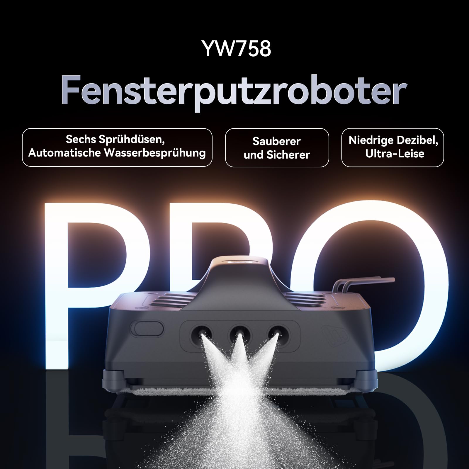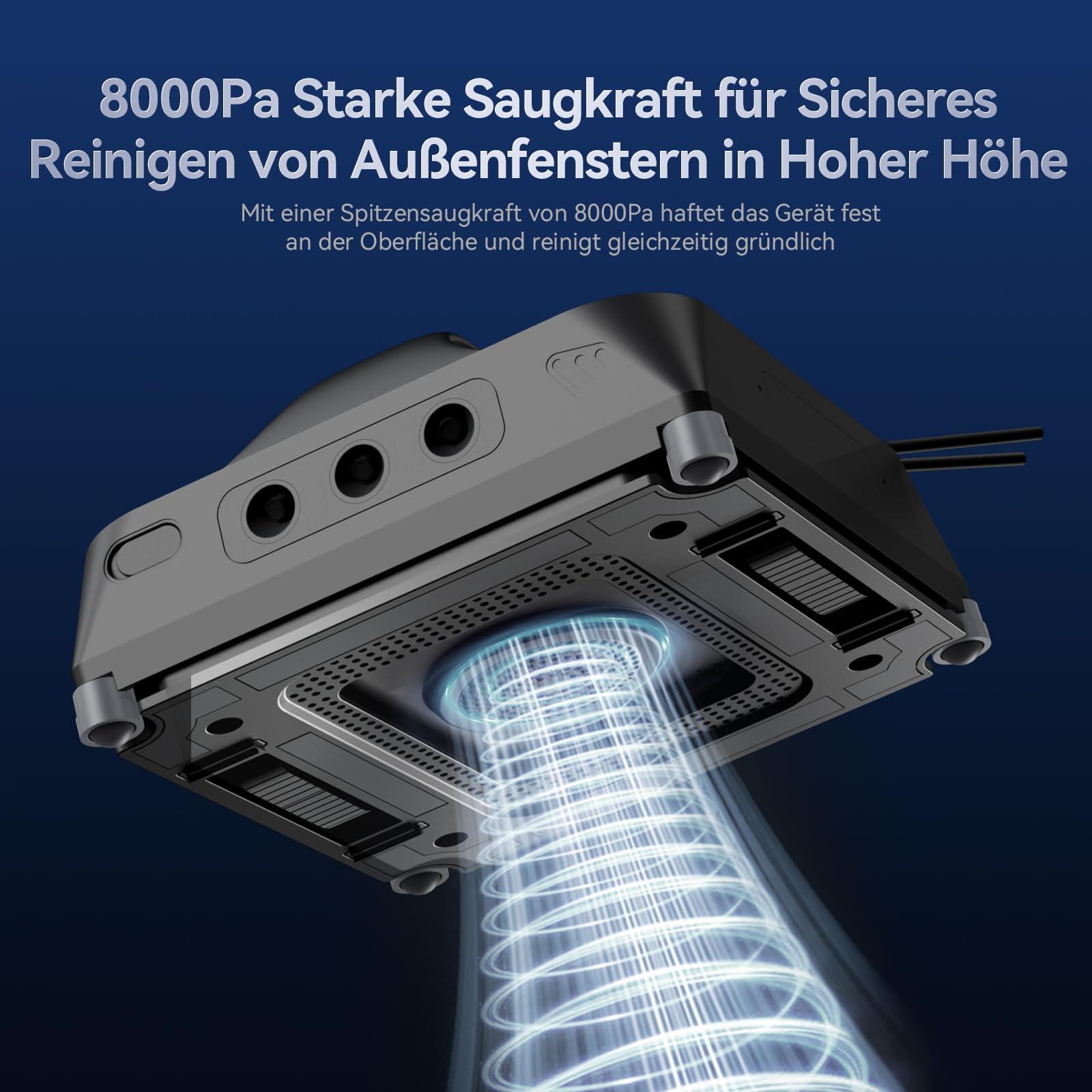 Fensterputzroboter mit 6 Wasserdüsen, 8000 PA Saugkraft und Kantenerkennungstechnologie für Innen- und Aussenfenster. Inklusive 100 ML Doppelwassertank für effiziente (YW758)