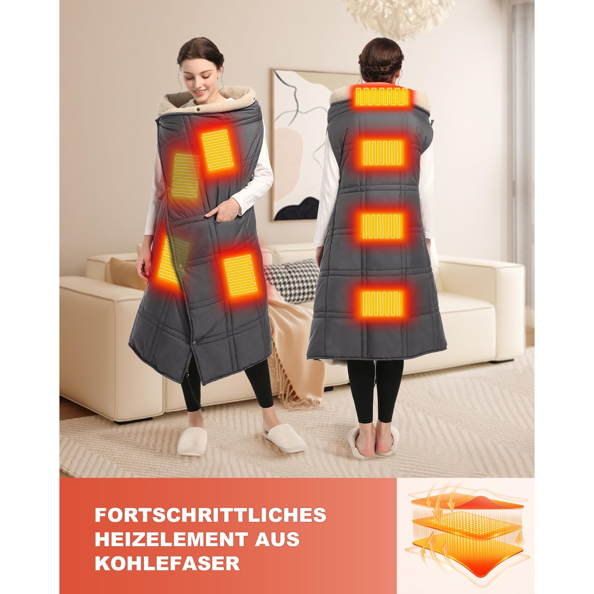 FERNIDA Kabellos Beheizbare Decke mit Akku, Wärme Elektrische Akku Heizdecke, Klein Winter Wearable Heated throw Blanket Extra Warm, 3 Temperaturstufen, Schwarz