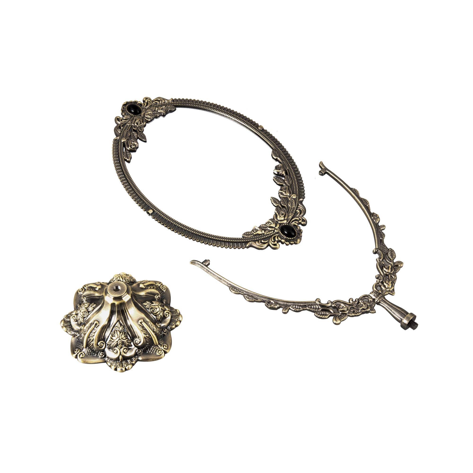 Dieser Tisch-Kosmetikspiegel im Vintage-Stil kombiniert Ästhetik mit praktischer Funktionalität. Die floralen Details am Metallrahmen und die elegante ovale Spiegelform machen ihn zum Highlight auf jedem Schminktisch.